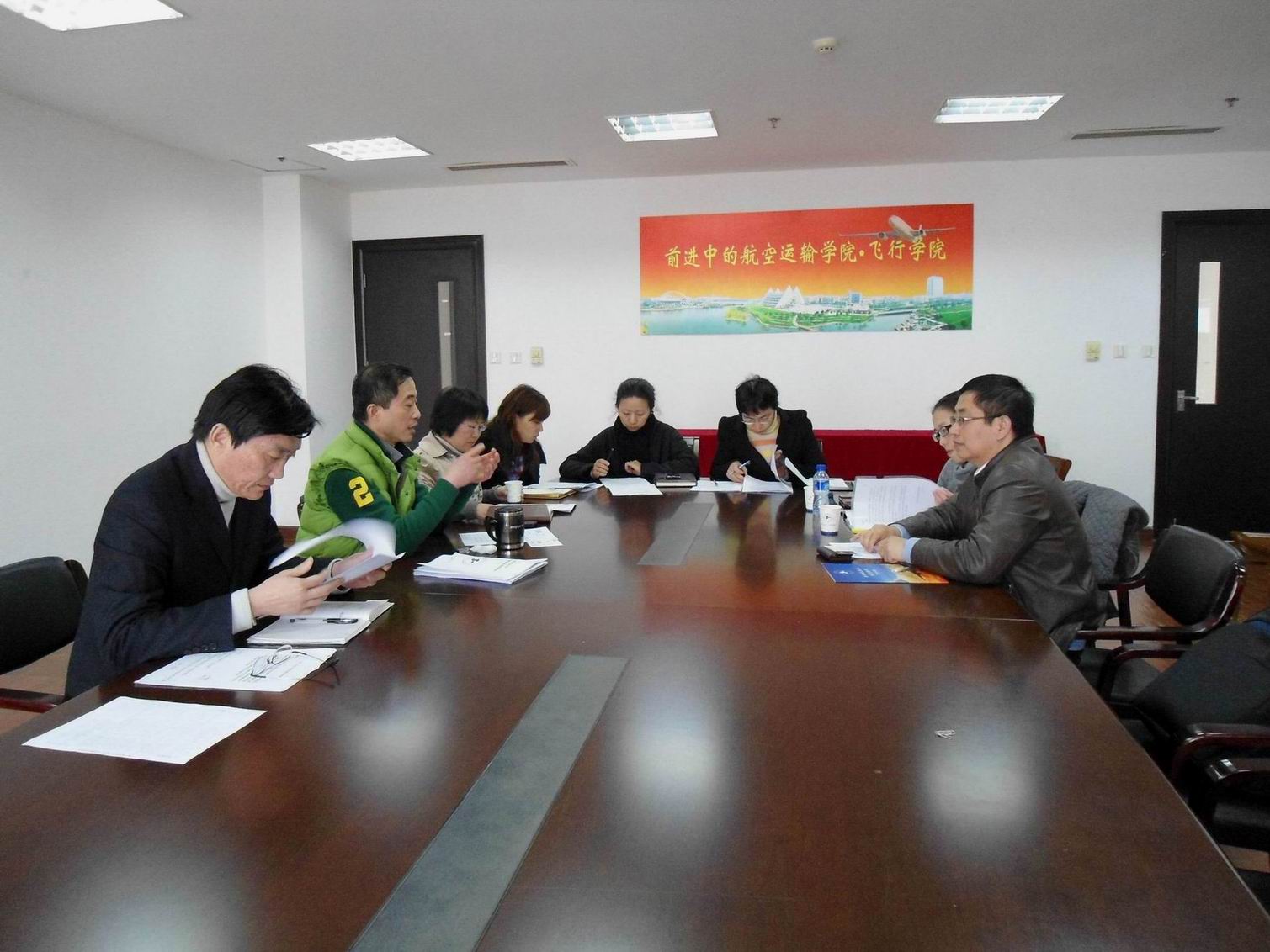 122下午2点,国旅运通航空服务公司中国区人力资源部总监王济涛、人力资源部经理钱骏来到航空运输学院,与航空运输学院/飞行学院魏建院长、副院长郝勇、匡江红、总支副书记周慧艳、民航运输系主任张旭、副系主任吴菁等共同商讨学生到企业进行实习的具体细节。