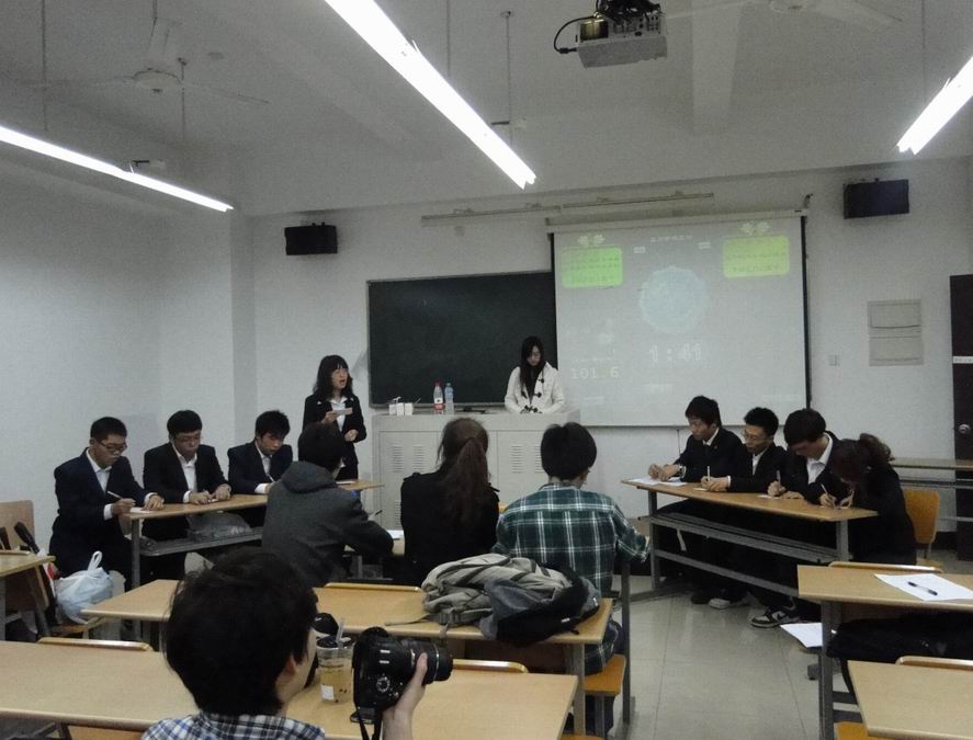为提高同学们的思维及表达能力,增加同学们之间的沟通交流,上海工程技术大学开展的第七届新生杯华语辩论大赛的半决赛甲组于11月29日18:00在教室D402展开。正方为化学化工学院与材料工程学院联合代表队,反方为电子电气工程学院与中韩多媒体学院联合代表队。比赛评委为前校队主力杨媛媛,王锴硕以及辩论协会副会长冯元鑫。
