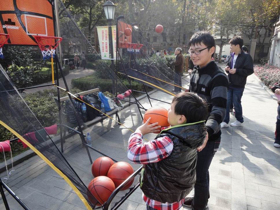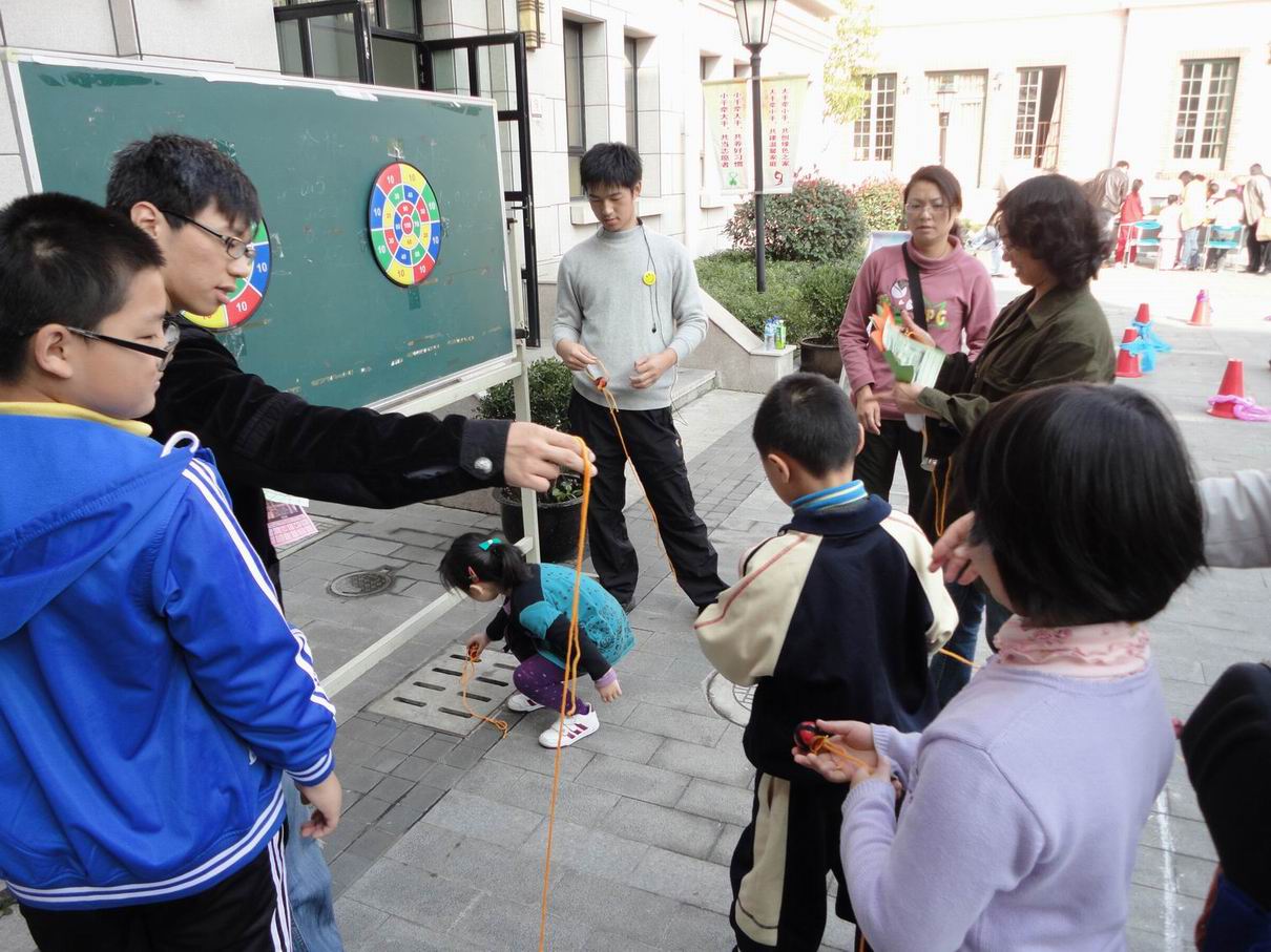 9点钟,活动正式开始,志愿者们都坚守在自己的岗位上,对到来的孩子们讲解游戏规则,进行示范,并且负责地监督孩子们,不让他们乱跑,以免造成安全隐患。虽然他们的工作内容很简单,但是在前来玩的孩子们变多时,他们的工作量也变得很大,而且他们还要对这些孩子们进行管理,这些无不是对他们的考验。