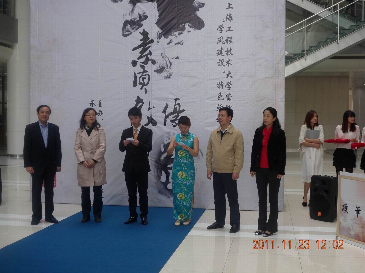 11月23日中午12:00,上海工程技术大学“学风建设”特色活动之“素质教育优学风工程——书绘征文大赛成果展”于图文信息中心二楼大厅拉开帷幕。本次书绘征文大赛由上海工程技术大学学生部(处)主办,管理学院承办。校学生处处长王明复、党委宣传部副部长曾瑞明、管理学院党委书记吴清、管理学院党委副书记虞蓉参加了本次成果展示。