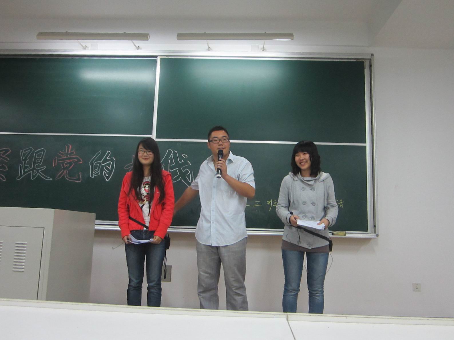 在精彩的开场魔术后,活动正式开始。首先由一班班长洪文斌带来了关于十七大的诗朗诵,接着二班林文馨等带来了动听的歌曲,歌曲过后同学们一起做了游戏,进行了关于十七大的有奖问答,最后虞老师带来了歌曲并总结了本次活动。