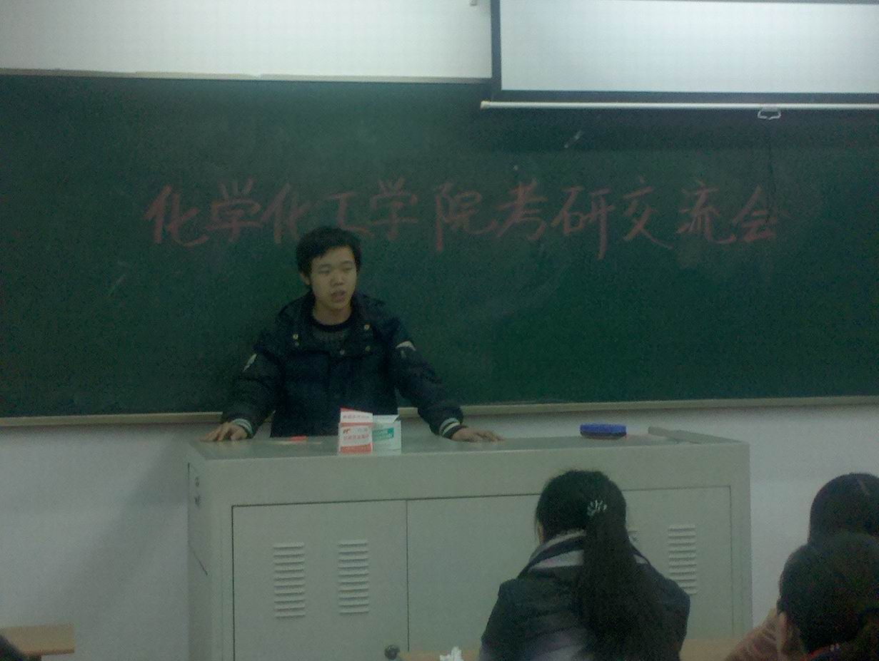 为增强学习气氛,建设良好学风,充分发挥优秀学生“传帮带”作用,化学化工学院于3月15日晚在教学楼D302召开了考研交流会。交流会上首先由08级毕业生张良、徐浩淼、周瑶、顾孙龙、陈培培等作为考研生代表向09级学生传授考研备考经验。他们从考研的目的、对自身的定位、如何选择学校和专业、如何准备考试科目等方面介绍了自己的宝贵经验,以及考研技巧和会遇到的各种问题为即将考研的同学做了详细的讲述,让同学们了解到了考研的更多信息和应注意的问题。