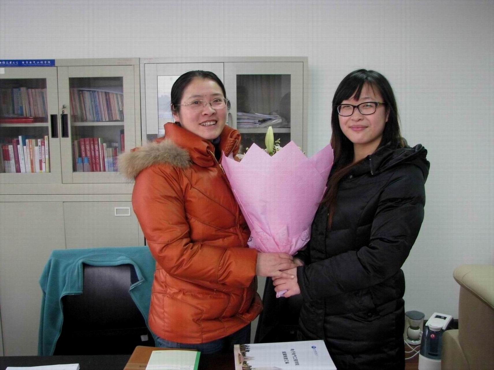 一大清早迎着灿烂的朝霞,在电子电气工程学院的办公室内,学生代表为每位女老师送上了一束鲜花,那一朵朵娇艳欲滴的鲜花,寄予着同学们对老师深深的祝福,希望老师们青春永驻。除了鲜花,细心的同学们还为女老师们准备了美味的蛋糕,大家一起分享这快乐甜蜜的时刻并用相机留下了难忘的瞬间。