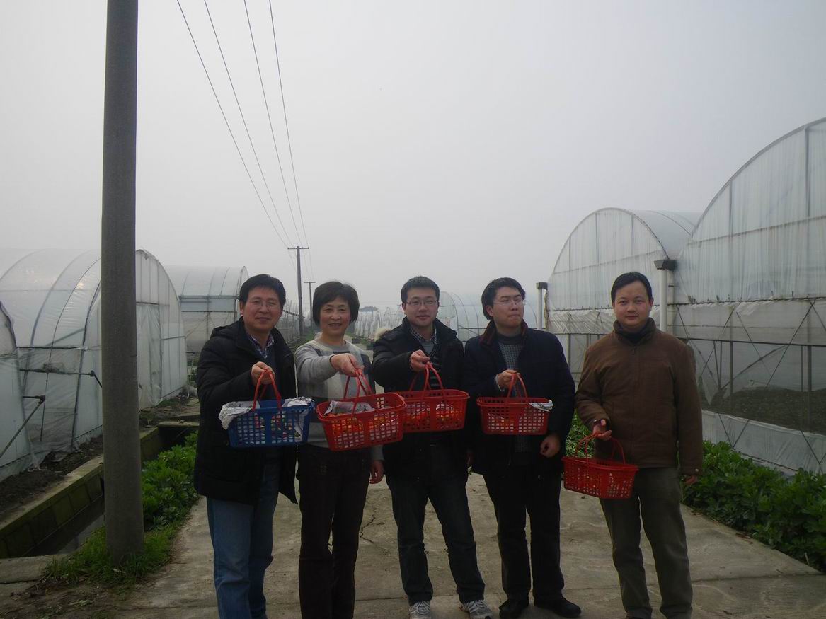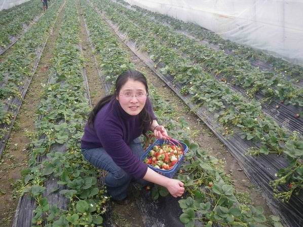 步,伴随着暖暖的阳光,兴致勃勃地来到了草莓园,生长在大棚里的草莓红彤彤的,新鲜欲滴。大家兴致勃勃地采摘了起来,欢乐笑语充满了各个草莓大棚。采摘的活动持续了大约2个小时,在不知不觉的谈笑中,每个人手中都采到了一篮蓝的新鲜草莓,收获颇丰。虽然采摘的草莓有大有小,但是大家的脸上都洋溢着快乐的笑容。活动结束了,老师们恋恋不舍地离开了草莓园。