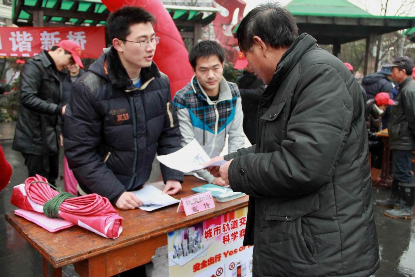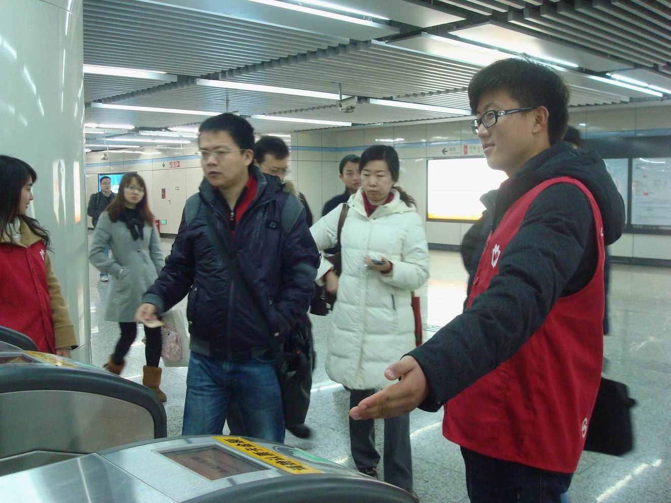 3月5日上午8时许,在9号线徐家汇站的换乘大厅,学院同上海地铁第一运营有限公司团委共同举办《雷锋就在我们身边》——志愿者启动仪式。9时许,在学院科学商店坐落的新桥镇文化广场,学院的志愿者们为当地居民宣传和普及轨道交通安全知识。