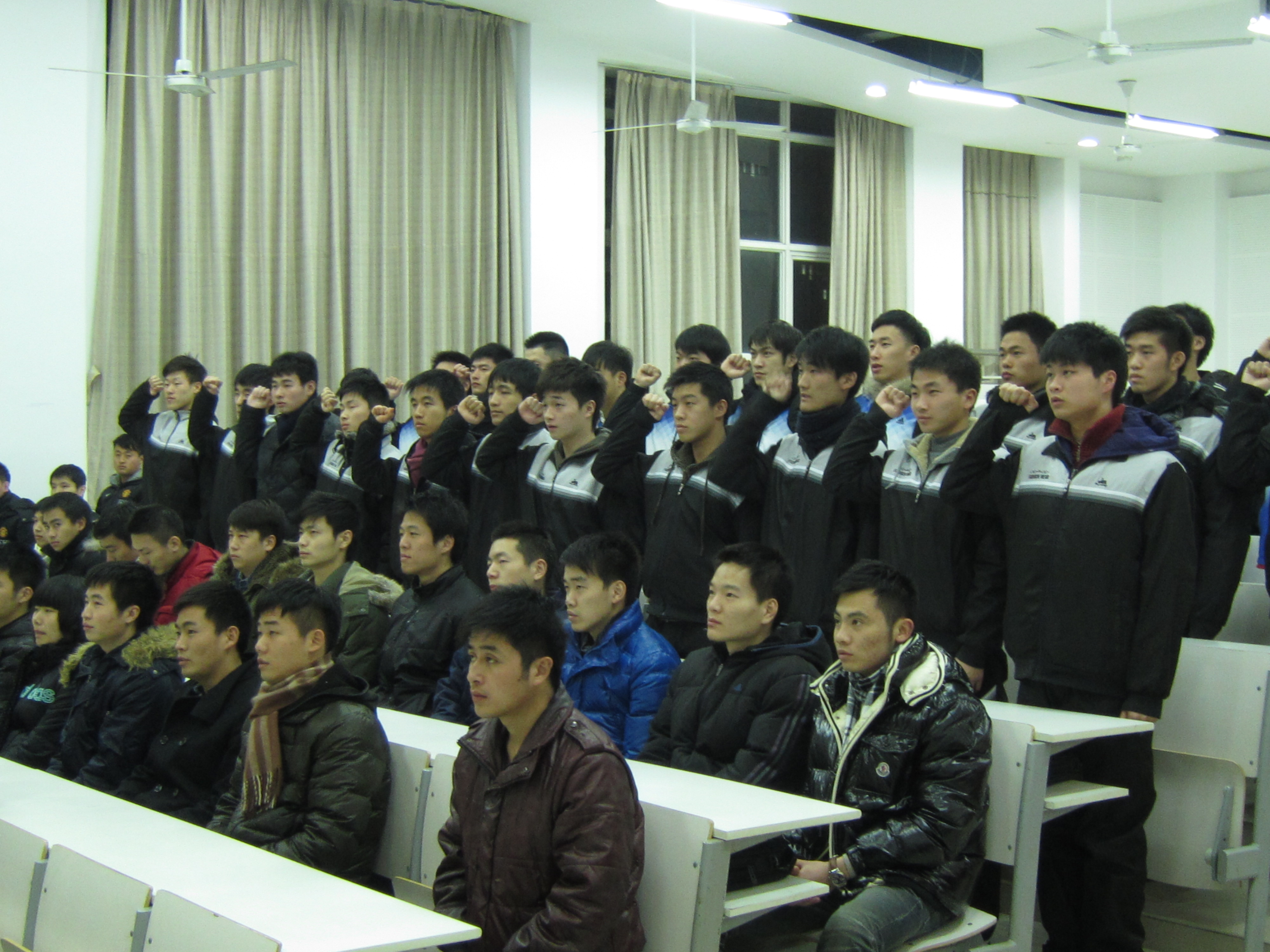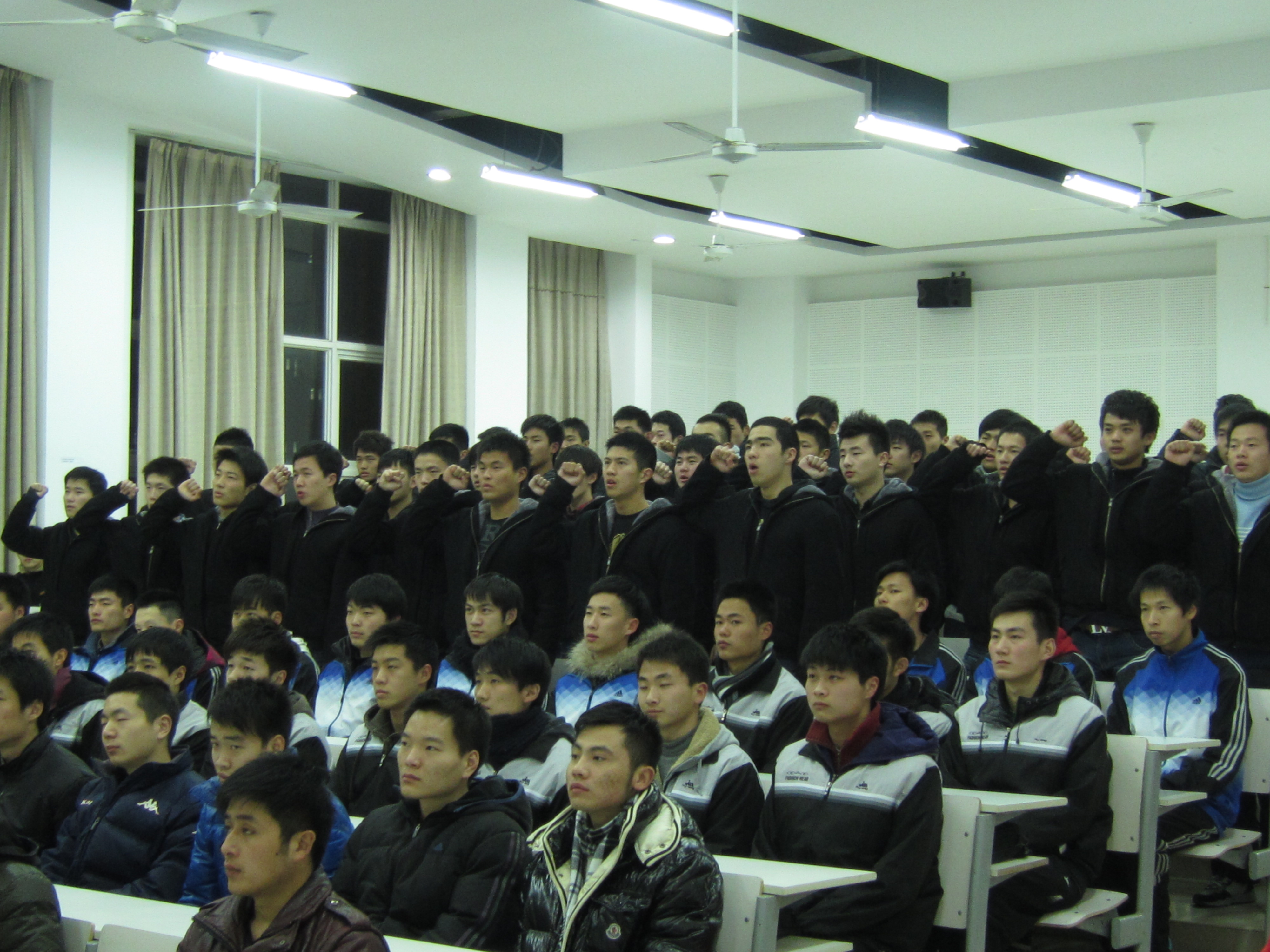 之后,丁兴国院长对全体学员一直以来在各方面做出的努力及取得的成绩给予了极大的肯定,并用朴实而又生动的语言结合自己多年的部队和飞行经验对在场的所有人进行了思想上的教育。在谈话中号召全体学员应将“忠诚、坚强、感恩、上进”的八个字牢记在心,要求在座的准飞行员们要将这八个字贯穿到自己三年的学习生活乃至未来将要从事的事业中去,同时祝愿同学们能早日飞向广阔的蓝天。最后,全体学员在各年级教导员的带领下宣读了“飞行技术专业学生准军事化管理誓言”。