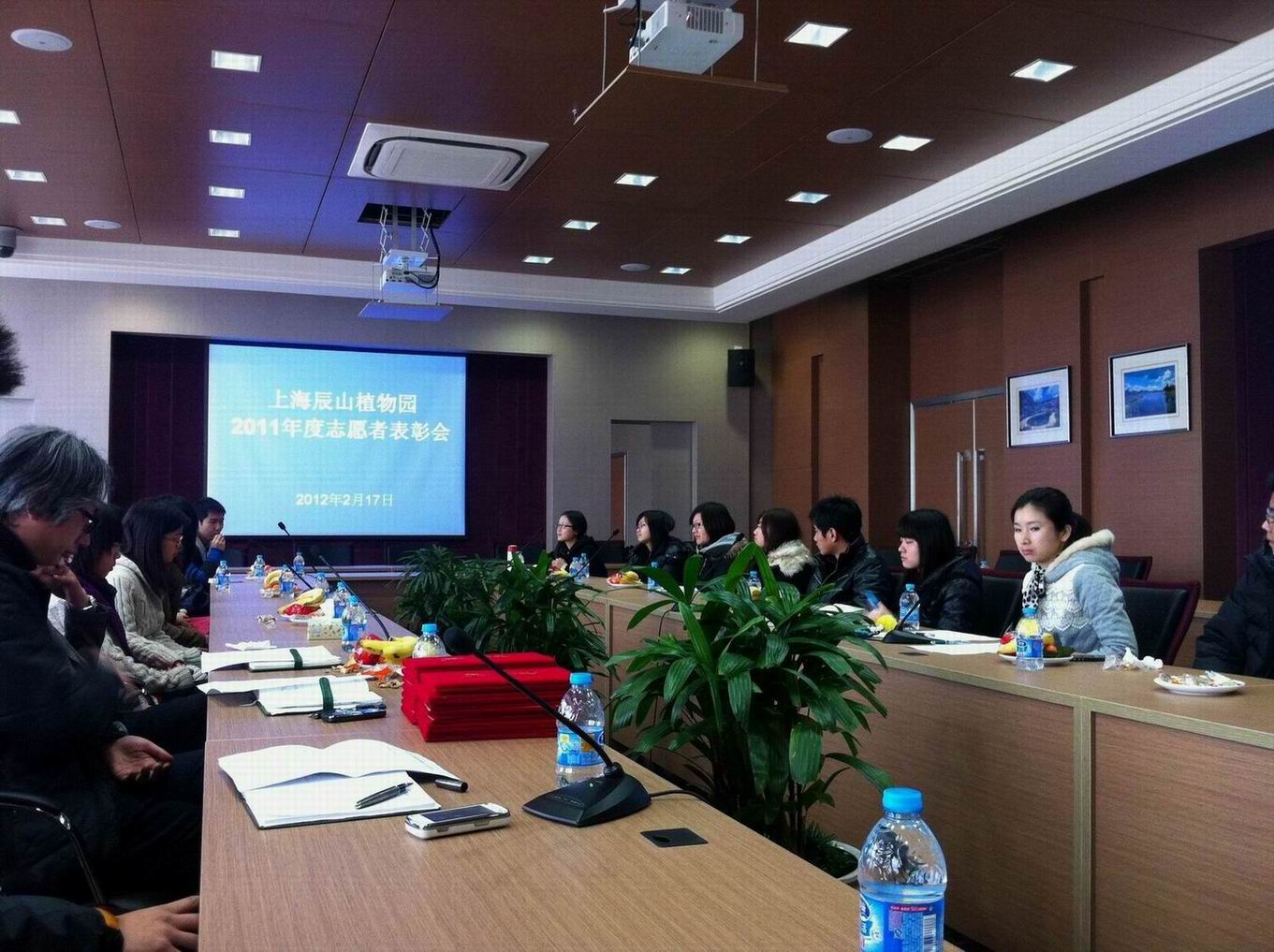 2月17日下午,上海辰山植物园2011年度志愿者表彰会在上海辰山植物园新会议室隆重召开在。上海辰山植物园党委陈星华副书记,信息中心李明胜主任,王锐副主任出席了本次表彰会,电子电气学院刘婧峥老师、张涛老师、学生志愿者代表参加了本次表彰会,参加此次表彰会的还有来自上海外国语大学,华东政法大学等十所高校的志愿者代表。会议由李明胜主任主持。