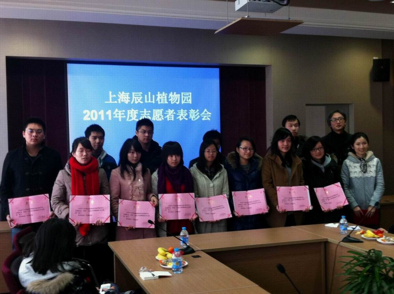 最后,辰山植物园陈星华副书记宣布了“2011年度辰山植物园优秀志愿者”获得者名单并颁奖,电子电气工程学院杨诗琼同学获得了辰山植物园优秀志愿者称号。
