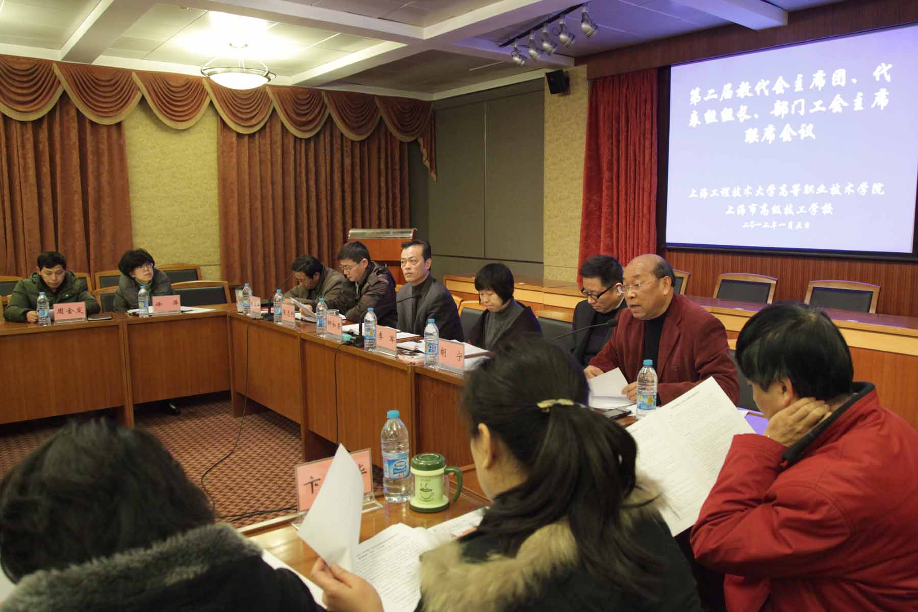 根据《上海市高级技工学校教职工代表大会实施细则》,《上海工程技术大学二级教职工代表大会实施办法》的相关规定,充分发挥好教代会的民主管理作用,关心好教职工生活,扩大对教职工救急范围和济难范围,学院于2012年元5日上午在综合大楼9楼第二报告厅召开了第二届教代会主席团、代表组组长、部门工会主席联席会议。出席会议的有主席团成员,基金管委会成员,教代会各代表组组长、部门工会主席共21人,会议由学院工会主席沈国平主持。