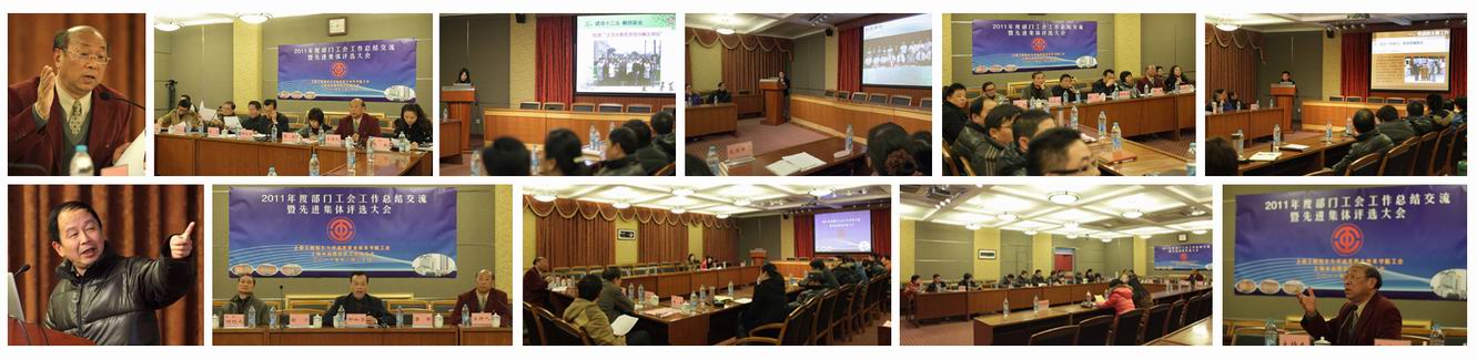 根据沪工程高职/沪高技工会[2011]第15号“开展评选2011年度学院(校) 在“工会创先争优”活动中涌现出的“工会活动积极分子”、“优秀工会干部”、“工会创先争优先进集体”的通知要求。12月31日下午2:00,学院在综合大楼九楼第二报告厅举行了2011年度部门工会工作总结交流暨先进集体评选会评选会。学院党委书记柳如荣、副书记李军、副院长胡宁出席会议并担任评委。担任评委的还有学院党办主任何利成、高发党支部书记张威,学院督导室副主任周翔。各部门工会领导出席了会议,部门参加评选的发言人准时到来并按照发言抽签顺序依次就坐。会议由工会主席沈国平主持。