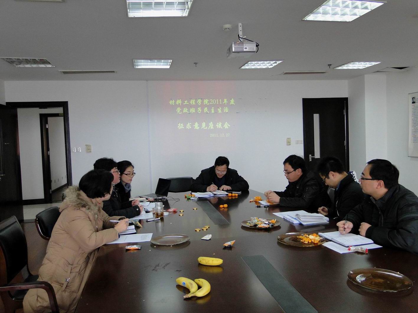 12月27日,材料工程学院召开了2011年度党政班子民主生活征求意见座谈会。会议由材料工程学院党总支书记徐国祥老师主持,学生办公室所有老师参加了此次会议。