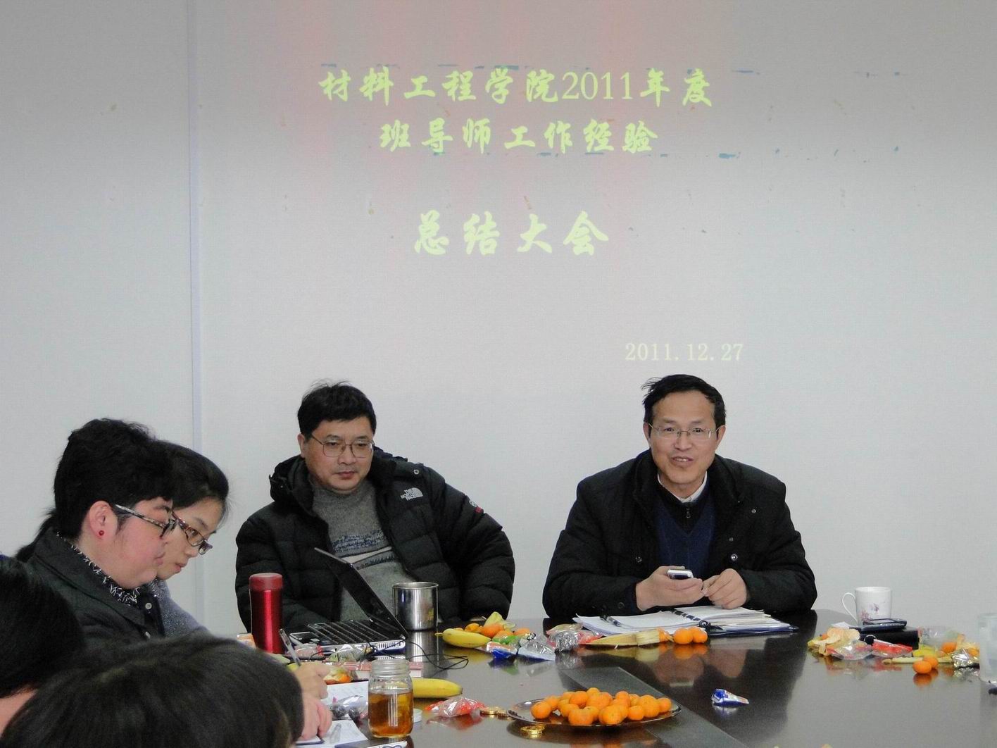 12月27日,材料工程学院召开了2011年度班主任工作经验总结大会。材料工程学院党总支书记徐国祥老师,院长于治水老师,党总支副书记薛玲老师,副院长林文松老师,学生办公室所有老师以及所有班导师参加了此次会议。本次大会由薛玲老师主持。