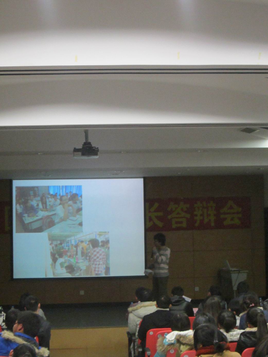 会议开始后,第一个上台进行答辩的就是汽车学院的根与芽社长沈凌鹏,在沈凌鹏论述了根与芽社的意义及活动内容后,由评委提出了几个问题并对根与芽社进行了点评,汽车学院参与本次星级社团评比活动的还有轮滑社,街舞社等。经历了激烈的竞争后,根与芽社与街舞社当选五星级社团,轮滑社当选四星级社团,沈凌鹏等社长也获得优秀社长称号。