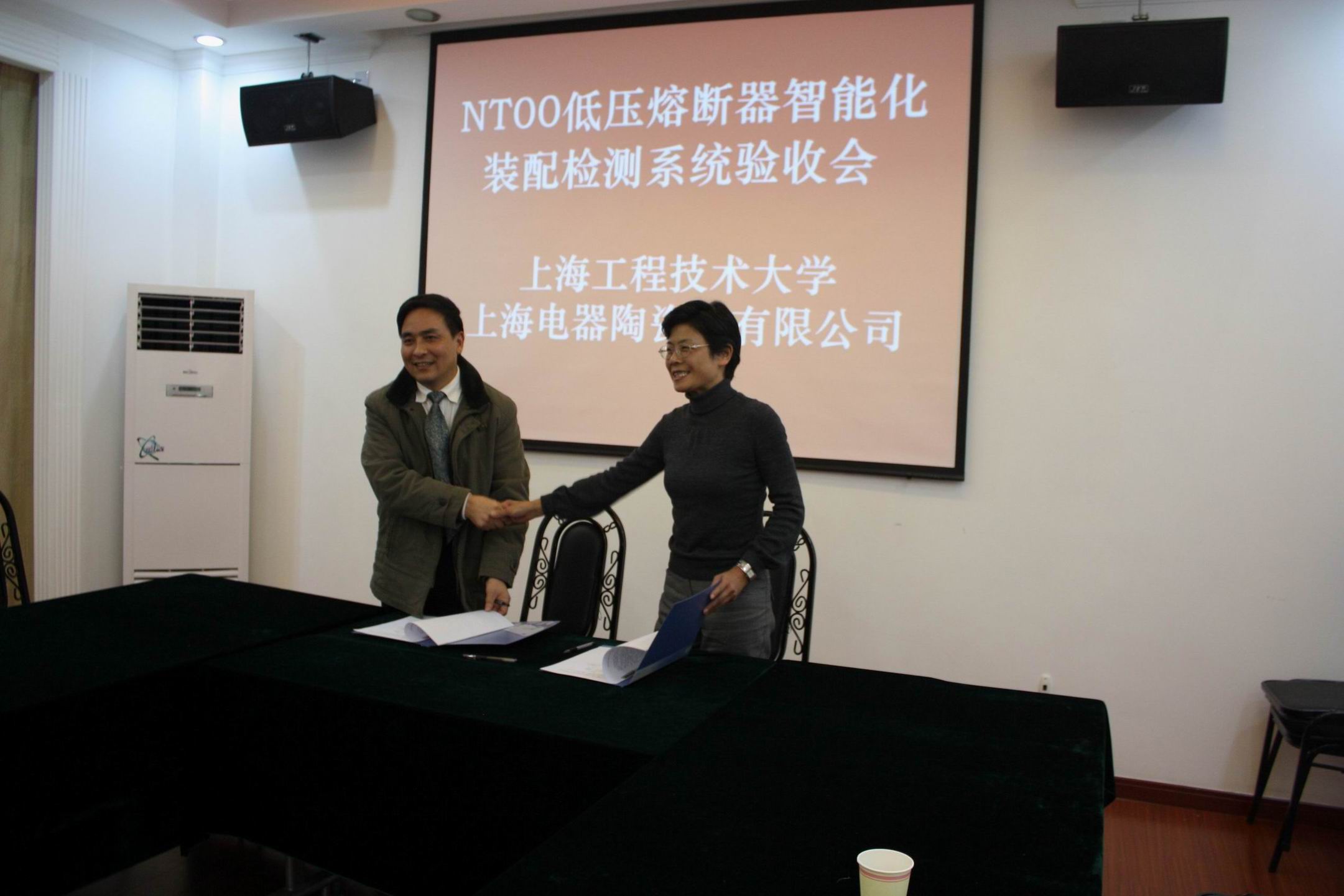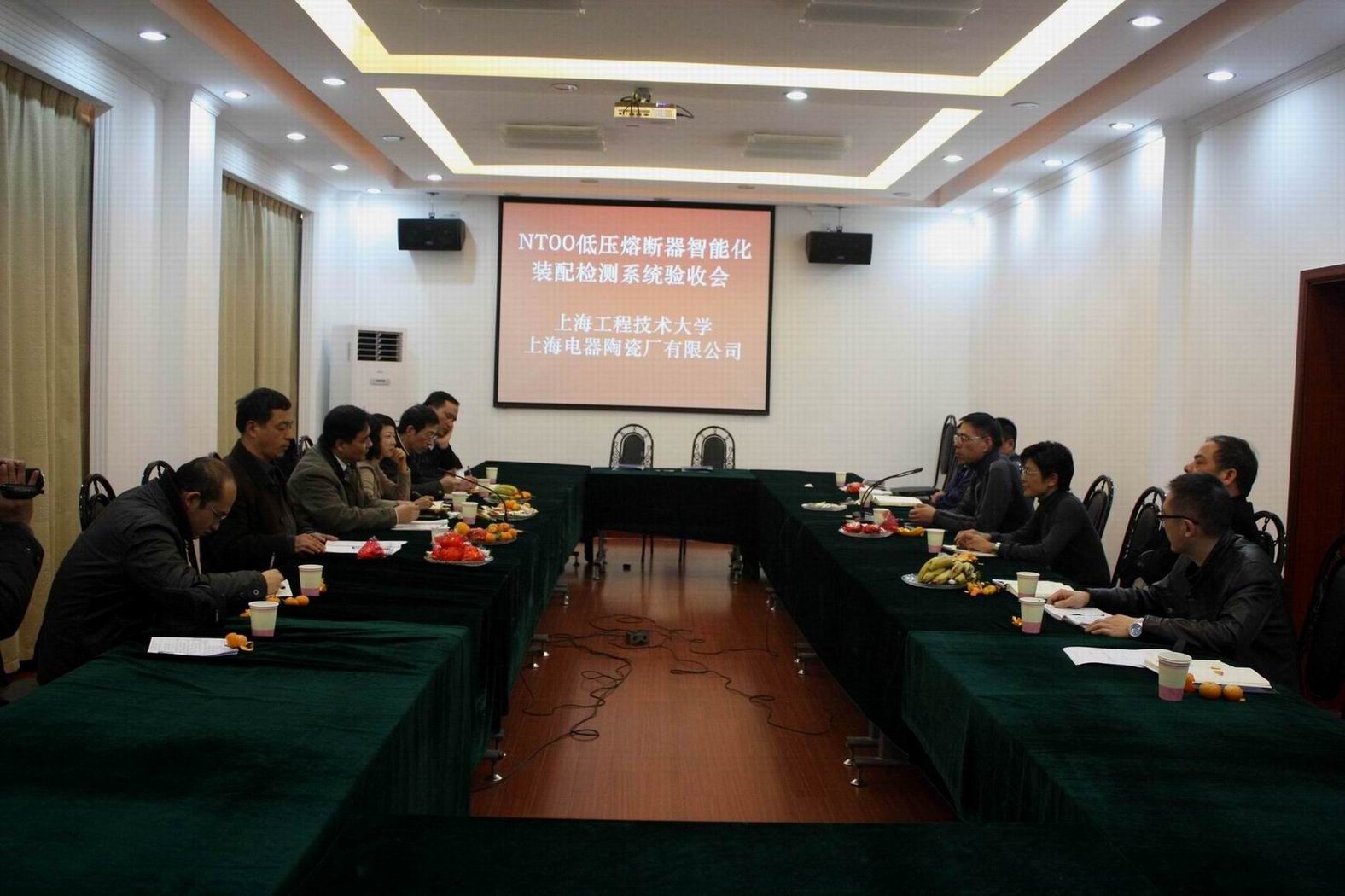 会议由上海电器陶瓷厂胡宏伟副总经理主持,上海电器陶瓷厂虞培国总经理、林海鸥副总经理,机械工程学院程武山院长、张敏良副院长、朱蓓副书记及双方项目组相关成员和教师参加了验收会议。