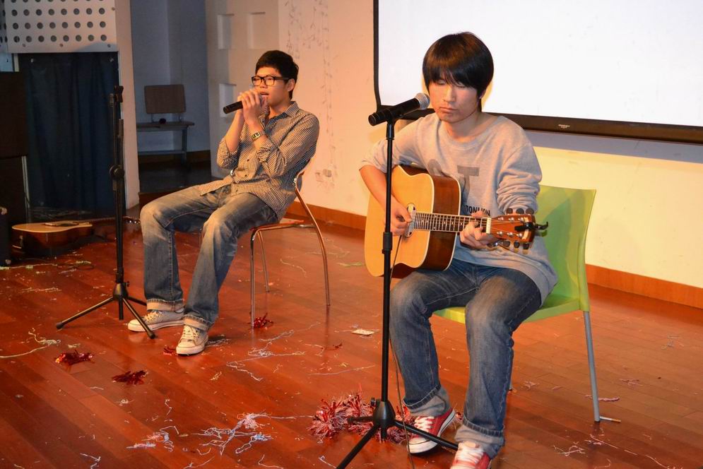 在三位同学余音绕梁的情歌对唱后,大家在两位同学唯美的萨克斯合奏中以幻灯片的方式共同回忆了我们入学,军训期间的点点滴滴,恩师情,同学谊,暖流在老师和同学们的心中无声地流淌。晚会中间的两次抽奖活动,让十几位同学们欣赏到精彩纷呈的演出之外得到意外惊喜。当晚18302100,掌声与欢呼声始终响彻师生活动中心三楼。最后,晚会在吉他社两位大二学长手持吉他的深情演唱中,三位老师的赞叹中,同学们的依依不舍中,会场尚未散去的高涨气氛中圆满结束。