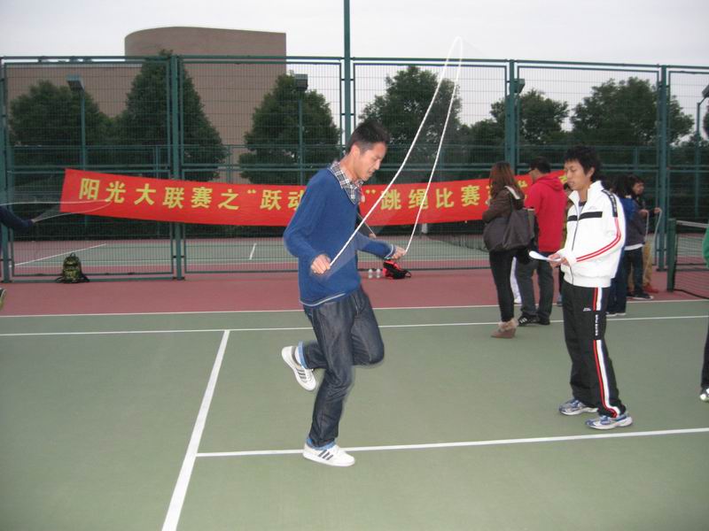 下午1630,跳绳比赛在网球场开始,经过了一系列热身运动后,选手们个个跃跃欲试。选手们被分成6组,不同学院的比赛同时进行。场边的拉拉队不断地为选手加油鼓劲,选手们也都身轻如燕,毫不辜负拉拉队的期望,每位选手在比赛中都发挥出自己的最高水平,时间开始倒计时,跳绳的频率进一步加快,场上的气氛热闹中夹杂着紧张。经过激烈的角逐,化学化工学院获得了团队第一名,第二名由机械工程学院获得,电子电气工程学院获第三名。