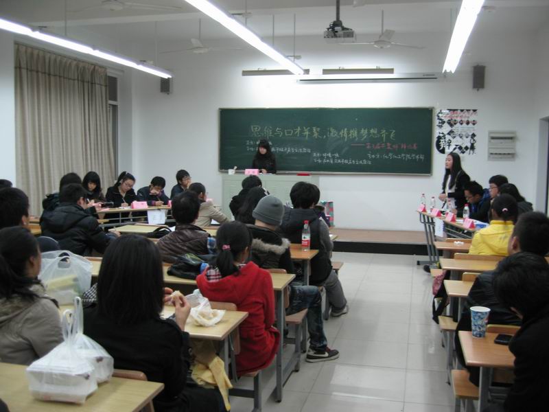 12618:00,第三届化学化工学院“共聚杯”辩论赛决赛在E303火热进行。分团委书记石海雄老师,副书记刘��羽及部分大一新生观看了此场决赛,比赛由学术部部长彭之超组织。