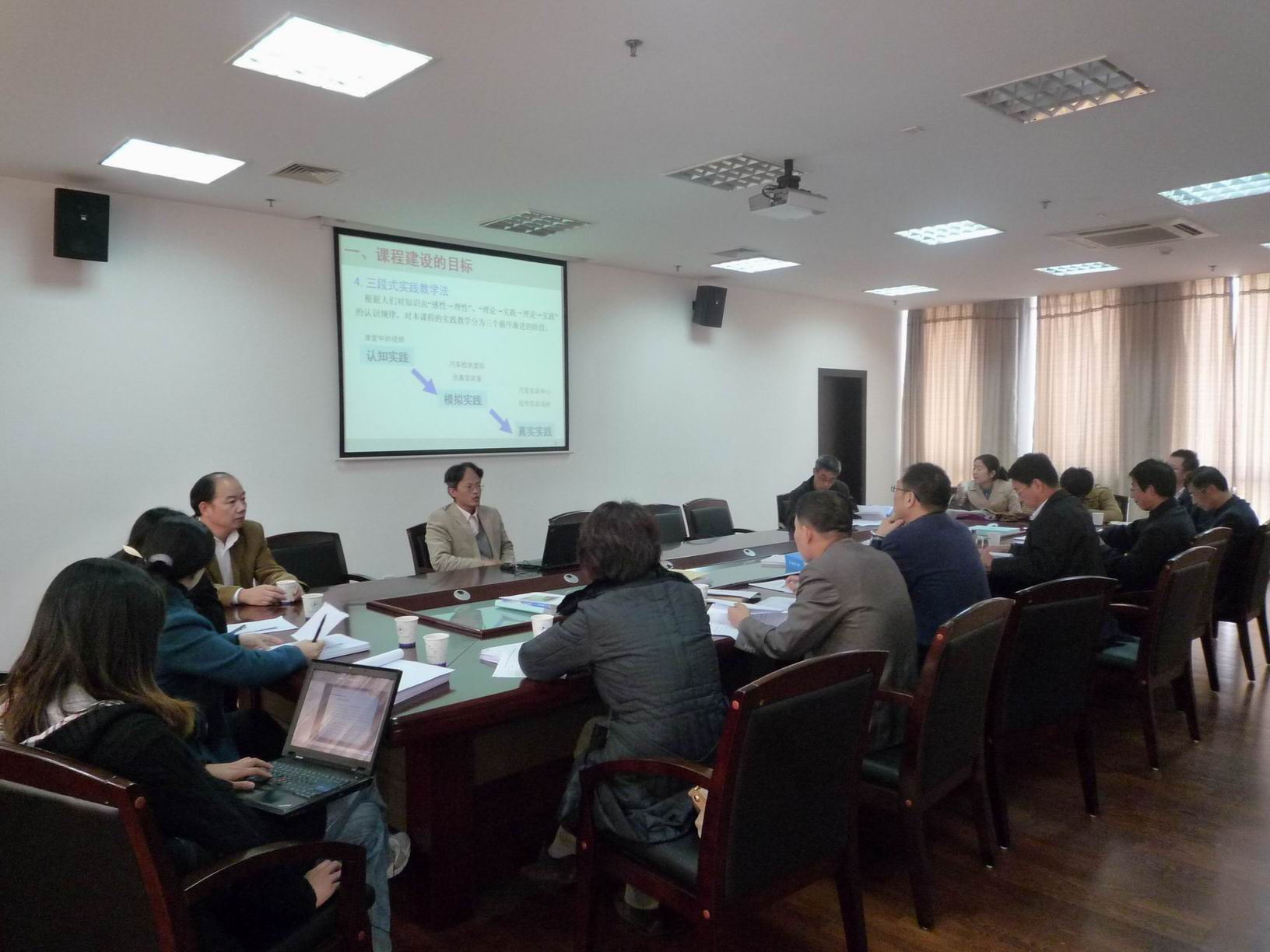 会上各课程负责人分别根据指标体系就课程建设成果进行了汇报和演示,经过专家认真打分与综合评议,9门课程中7门通过验收,2门通过中期检查。专家们充分肯定了各课程组所取得的成绩和进步,肯定了他们的辛勤劳动和付出,同时认真分析了课程建设过程中的问题和不足,并就今后课程建设提出了重要意见:一、要将教学内容针对性和实用性落到实处;二、要充分发挥网络资源的优势,加强与学生的交互功能;三、教学效果应建立学生、同行、专家的综合评价机制;四、课题组成员每人都要有课程录像;五、要使精品课程真正为教学服务、为学生服务。