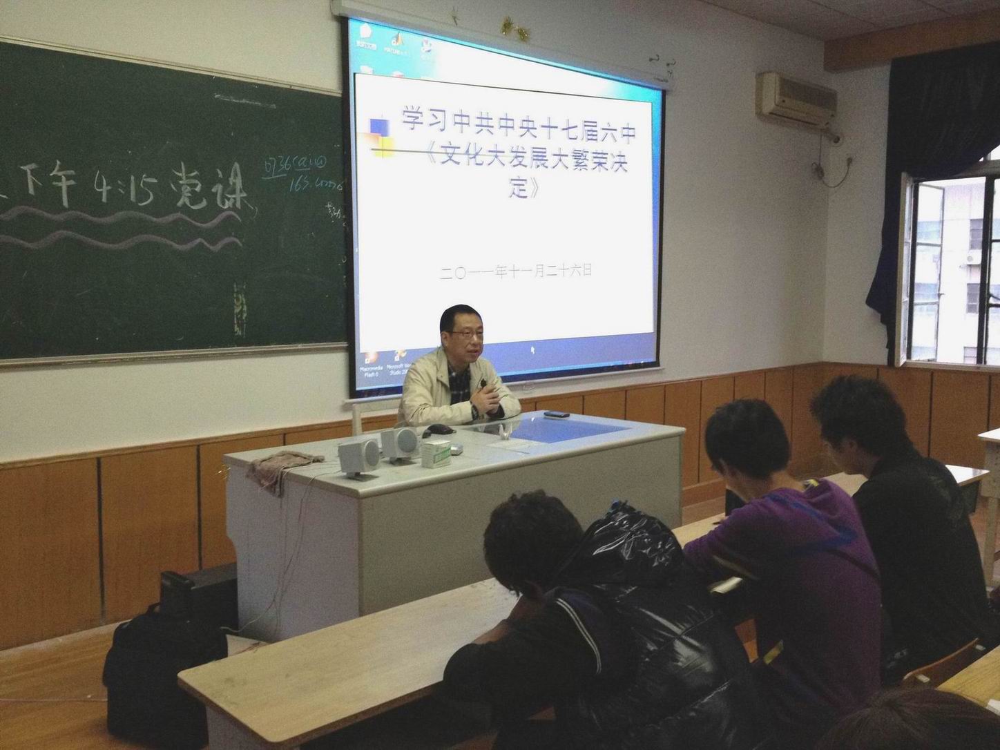1129,按照我院初级党校第三期党课教育计划安排,院党总支书记、院长姚黎明老师在新村路校区为2011年学院初级党校第三期学员授课。