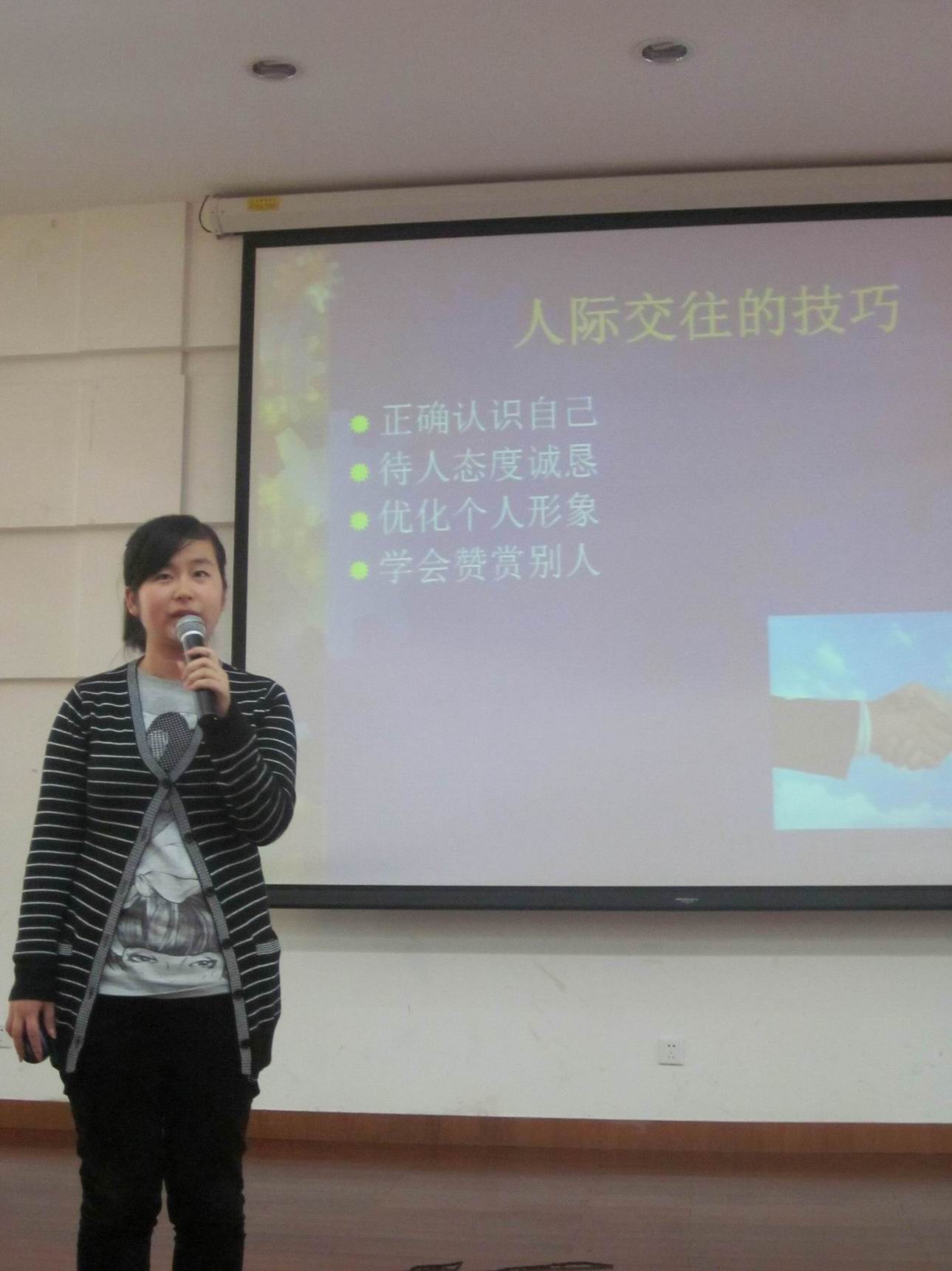 为了积极营造学院心理健康教育文化氛围,提升学院心理健康教育工作水平,城市轨道交通学院朋辈互助站于11月29日18:00在师生活动中心三楼多媒体报告厅举行了主题为“梦想,青春――那一年我们望着星空”的心理健康教育宣传活动。学院党总支副书记徐建华老师、学院心理辅导老师刘景军、分团委书记闫冰老师出席了本次活动,另外参加本次活动的还有学院朋辈互助站部分成员和2011级专科班全体同学。活动由学院朋辈互助站陈星星和高帆两位同学主持。