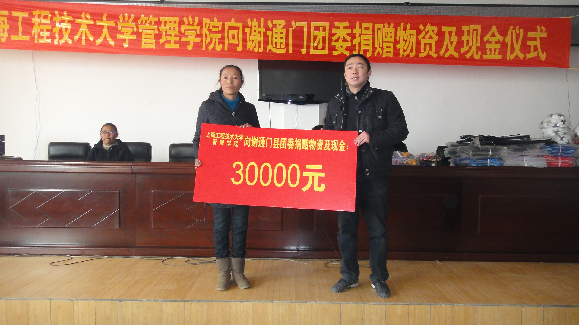 2011年11月24日,管理学院资助西藏谢通门县团委仪式在县农牧培训中心举行。团县委书记琼拉,中学校长顿珠次仁,团县委副书记、上海工程技术大学管理学院周家�爬鲜Τ鱿�了仪式,向学生代表和青年代表发放了捐赠物资。