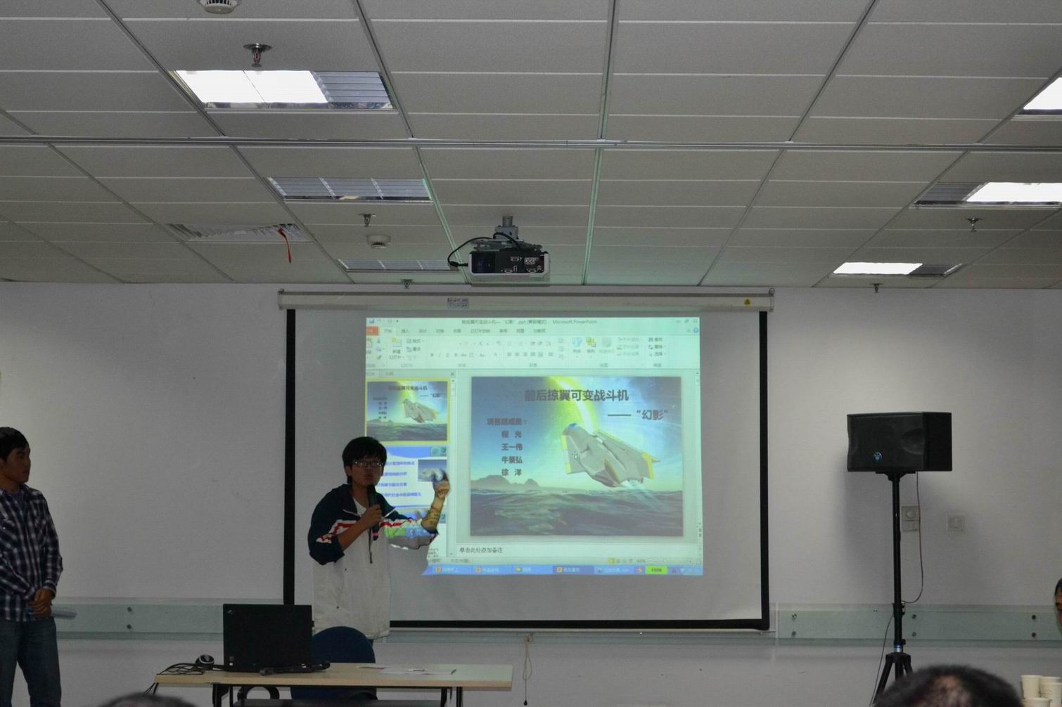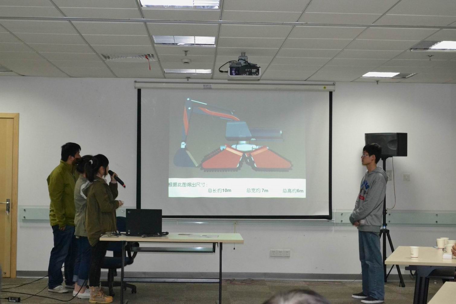 首先,获胜的三个团队——“挖掘机团队”、“坦克团队”和“战斗机团队”分别进行“参赛产品介绍”,他们通过精美的PPT和视频向评委老师展示了自己从设计理念的提出到实施的每一个过程。他们表示在参赛过程中重要的是从中收获到的团队精神和对意志、耐心的考验。虽然过程中遇到很多专业上的困难,但是大家同甘苦共患难,依然很开心。