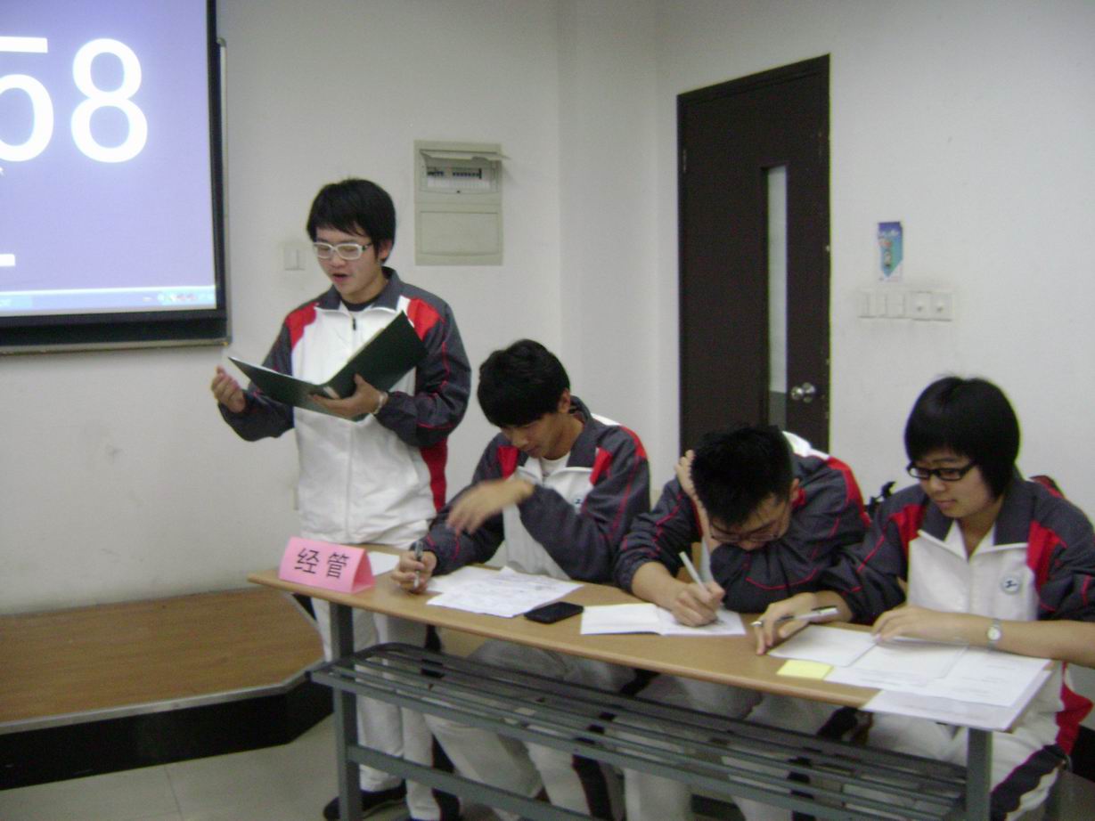 经过1个多小时的激烈的辩论,经管班和商务班取得了最终决赛的入场券。请同学们期待双方在下周举行的决赛中的精彩表现吧!