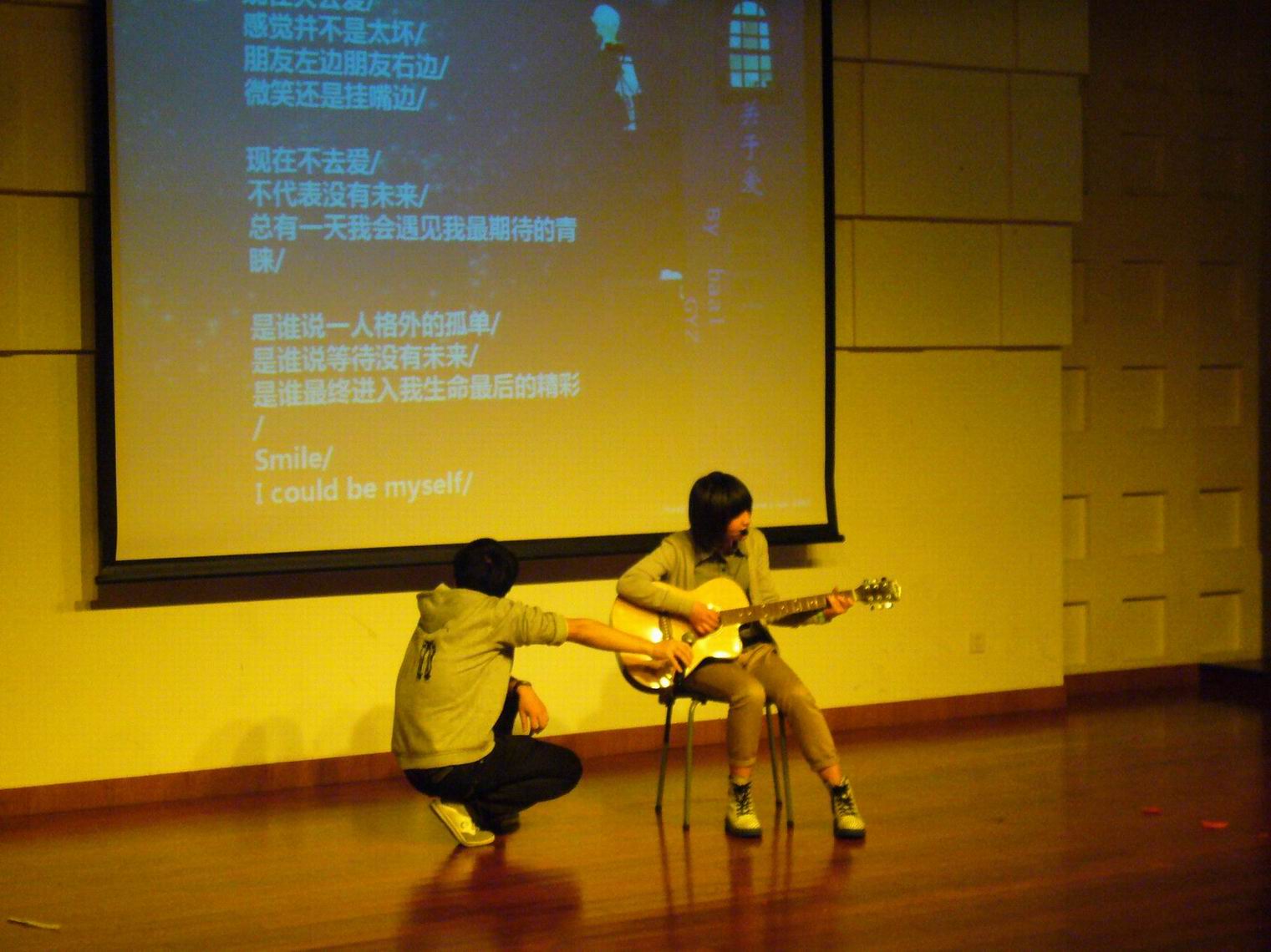 下午5点半,参演的演员和文艺部的所有工作人员到达表演现场做准备。工作人员正在忙碌地布置现场。热情的观众已经陆陆续续地开始进场。6点半,晚会正式开始。开场表演是提琴乐团的深情演奏,悠扬的音乐声激起了观众的共鸣,演奏完毕时,观众的掌声可谓十分给力。随后,激情的歌唱表演《王妃》更是赢得了全场的欢呼声,让现场的气氛更加火爆。英文歌曲串烧节目中,三位女生的甜美歌声打动了全场;安静的吉他弹唱原创歌曲《关于爱》又让观众静静聆听;小品节目和幽默的魔术表演引来了现场的笑声不断,将晚会带入轻松愉悦的气氛。晚会还穿插了有趣的游戏环节,有夹气球、猜字等,在现场再度掀起一次次小高潮。辅导员沈智莉老师也参与了夹气球环节,游戏环节师生默契配合,互动增进了学生与老师的感情。最后,作为嘉宾的学院校园女生带来了一首经典的粤语歌曲,甜美歌曲示意晚会已进入尾声。一曲唱罢,辅导员沈老师上台发表感言,表示对这次节目十分满意。现场在一片持久的掌声中拉上了帷幕。