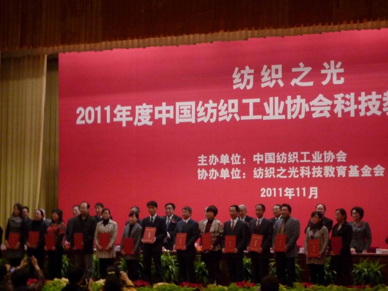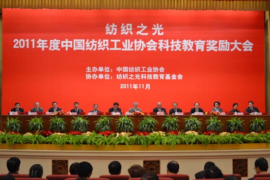 1110,由中国纺织工业协会主办、纺织之光科技教育基金会协办的“纺织之光”2011年度中国纺织工业协会科技教育奖励大会在北京人民大会堂召开。中国纺织工业协会会长杜钰洲、副会长许坤元、王天凯、陈树津等协会领导,各行业协会、协会各职能部门相关人员,获奖单位代表及个人等500余人出席大会。大会由副会长高勇主持。