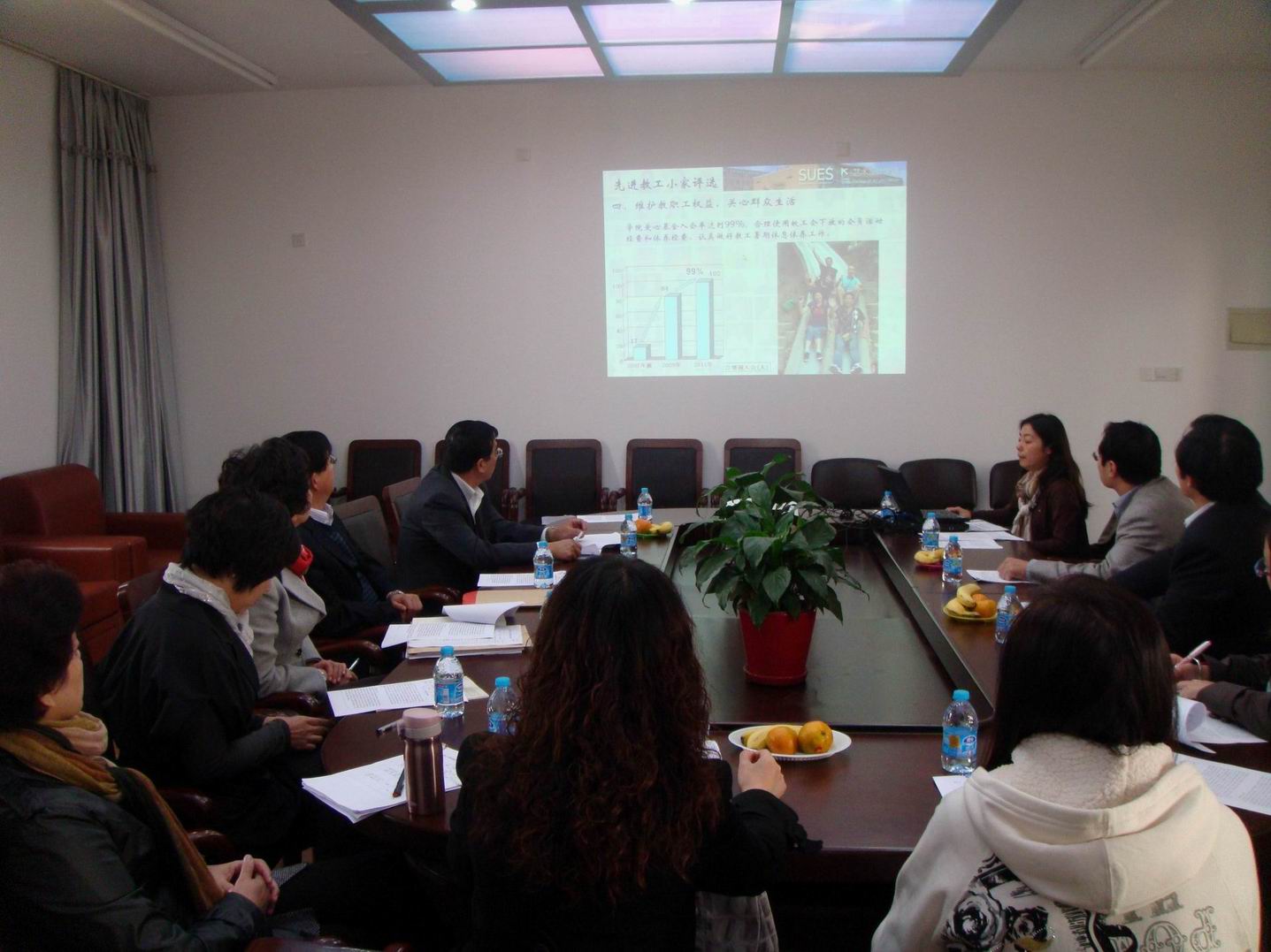 艺术设计学院高度重视工会工作,“以评促建,评建结合,创温馨和谐之家”为宗旨的工会工作开展地成效显著。11月11日上午8:30,校党委副书记田信灿携校工会副主席沈海庆、宣传部长王一川等考评组成员一行7人来到艺术设计学院,考评了艺术设计学院的“先进教工小家” 的创建工作。艺术设计学院党总支书许传宏、院长张杰、院办主任龚瑶红参加了评选会。院工会主席朱翔作了工作汇报,航空学院党总支书记卫国林主持了会议。