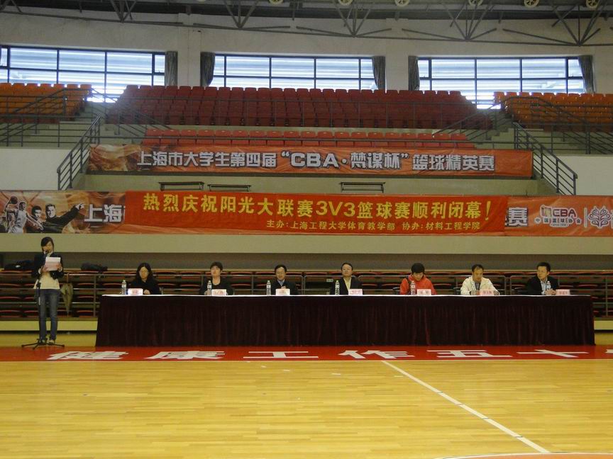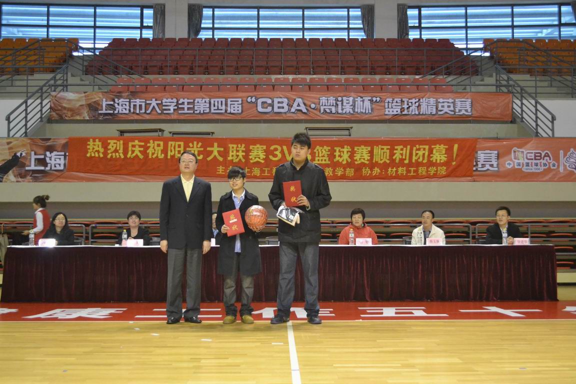 11月2日12:15,伴随着嘹亮的国歌声,“阳光大联赛‘3V3篮球赛’闭幕式暨材料工程学院‘新生杯’”篮球赛在上海工程技术大学体育馆拉开了帷幕。校体委会主任、副校长孙培雷老师,校体委会副主任、体育教学部主任谢敏老师,材料工程学院党总支书记徐国祥老师,体育教学部薛玉佩老师,城市轨道交通学院党总支副书记徐建华老师,材料工程学院党总支副书记薛玲老师参加了此次闭幕式。