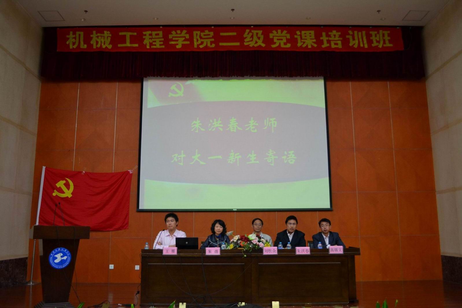 10月26日下午15:00,为加强对大一新生的入党启蒙教育,深化对入党积极分子的培养,机械工程学院在行政楼B301举行了学院二级党课培训班开班仪式。校党委组织部副部长朱洪春、校党委党校办公室主任高锡文、机械工程学院党总支书记刘牧众、党总支副书记朱蓓、学院学生党员、入党积极分子代表及全体大一新生参加了此次开班仪式。会议由学院分团委书记、学生第一党支部书记王雁主持。