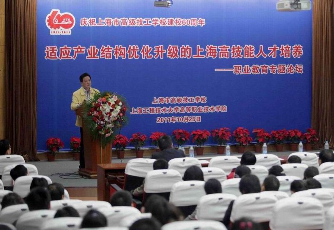 为庆祝上海市高级技工学校建校60周年,10月25日下午1:30,上海市高级技工学校、上海工程技术大学高职学院“适应产业结构优化升级的上海高技能人才培养”职业教育专题论坛在综合楼11楼思进厅隆重举行。此次论坛特别邀请上海市人力资源和社会保障局职业能力建设处仇朝东处长、上海市教育科学研究院职业教育与成人教育研究所副所长陈嵩研究员作专题报告。论坛由学院副院长胡宁教授主持,高技校、高职学院的全体教师、职能科室管理干部和部分学生代表听取了报告。