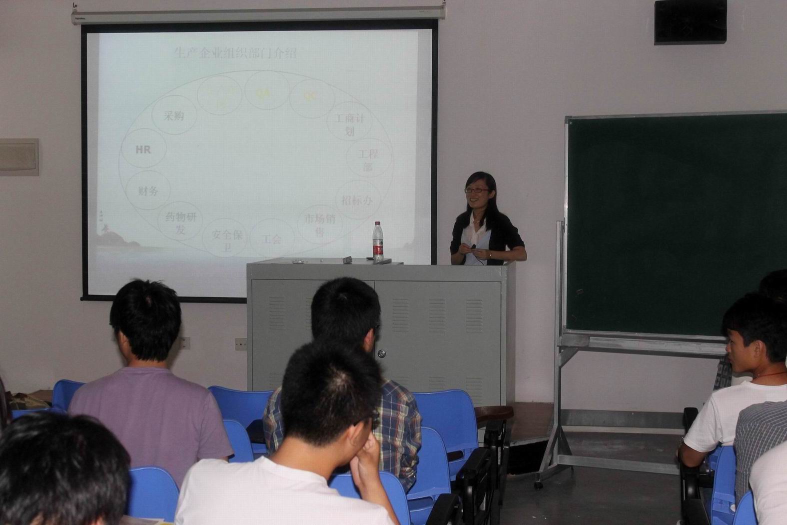 岳女士以2010最新版的GMP规范为开端,结合新版规范在药物制剂生产过程中的具体要求以及新旧版本之间的差异为同学讲解了药品生产质量管理规范的重要性;随后,岳女士以上海信谊药厂有限公司固体制剂生产为例详细向同学们介绍了片剂、胶囊剂及霜剂的生产工艺,并结合自己的工作经验及实例分析了生产过程中应掌握的各种技能和分析、处理、解决问题的关键;最后,岳女士向同学们介绍了现有医药生产企业组织机构的组成和功能,向同学们介绍了我国医药生产企业的现状。岳女士深厚的理论功底、丰富的生产实践经验及现代的管理经验让即将踏入生产岗位的“准工程师”们在讲座中受益匪浅,讲座结束后同学们还就生产工艺、个人发展方向等关心的问题与岳女士进行了交流。