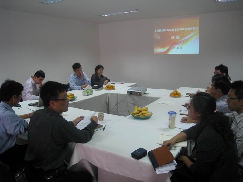李勇副主任首先从上海纺织2012年度科技创新项目立项的背景、立项目标、立项内容、申报的要求等方面对指南进行解读,并对纺织控股集团下面与创新项目相关的企业进行了介绍,以更好的进行产学研合作的对接。