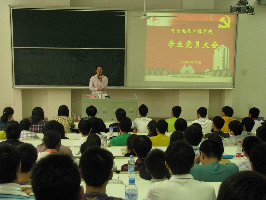9月30日下午13:00,电子电气工程学院在教学楼E215召开全体学生党员大会。学院党委书记茅蕾,副书记王东阳,学生党支部书记和全体辅导员参加了会议。本次会议由院党委书记茅蕾主讲,院党委副书记王东阳主持了会议。