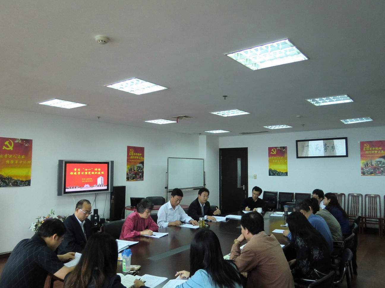首先全体与会人员在行政楼大厅参观学习了党建九十周年成果展,接下来由常务副院长王岩松老师向各位传达了潘世伟教授学习胡锦涛总书记“七一”讲话专题报告的主要内容和自己的学习体会。常务副院长王岩松老师着重指出党的历史是伟大的历程,要坚定认识到中国实现的伟大跨越;党的建设是伟大的工程,要抓好队伍建设;党的事业是伟大的事业,要办好党的事情。