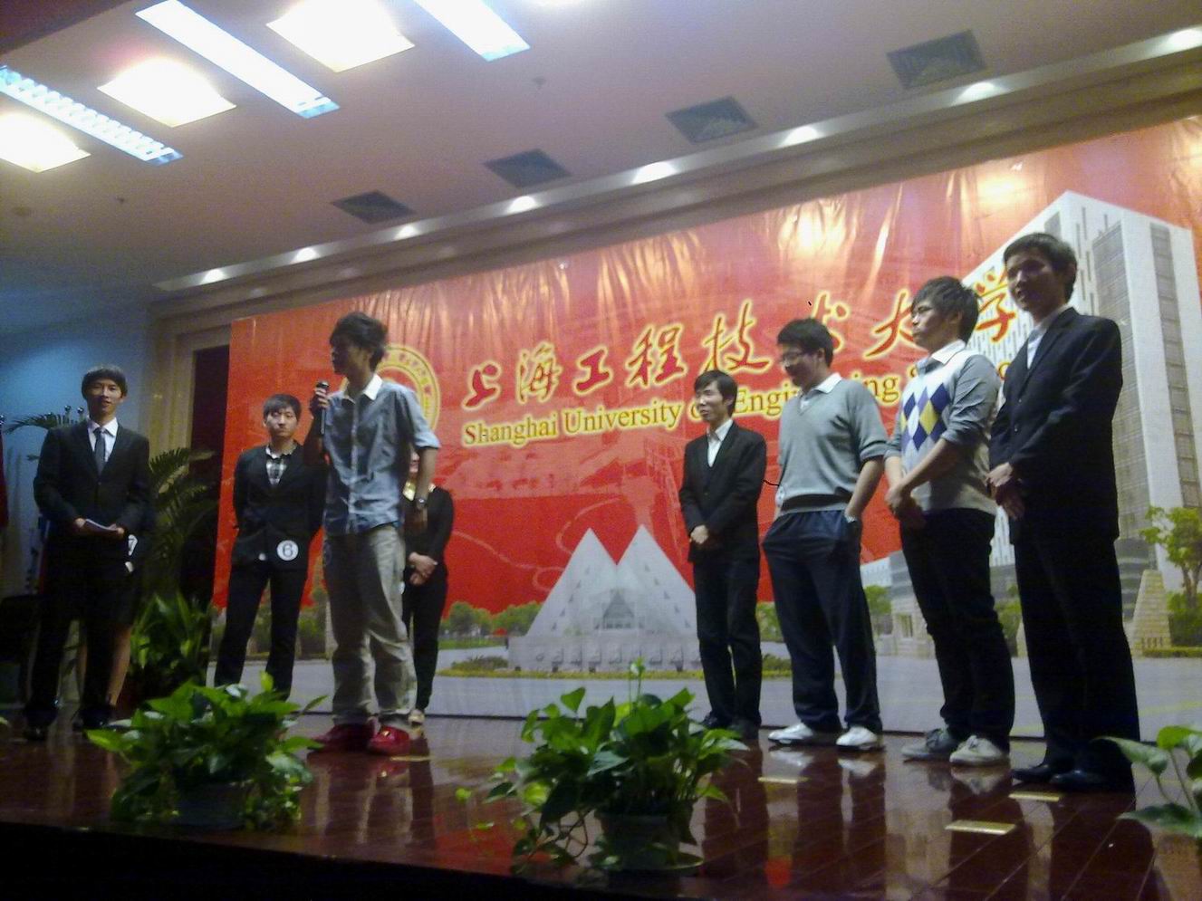 比赛伊始,主持人介绍了本次比赛的评委,他们有美国花旗银行有限公司上海分行Glible Consumer Group Executive Manager Peter Wang,Citibank Young Talent Program Project Andy Zhu,友邦保险公司上海分公司资深业务经理张媛媛小姐,林艳小姐,王伟先生,王振华先生以及上海工程技术大学管理学院分团委书记金佳雯老师。参赛的选手共8名,均是经过重重考验,过关斩将才汇聚到了决赛的舞台上。在自我介绍环节,选手们力争上游,表现出自身的自信与优秀。真正考验各选选手的难题则隐藏在简单的15个数字中,每个选手选取一个数字,数字的背后是一件物品,选手有三十秒的思考时间,然后在一分三十秒内推销产品。在比赛之余,亦有观众互动和面试小品欣赏,为比赛增色不少。