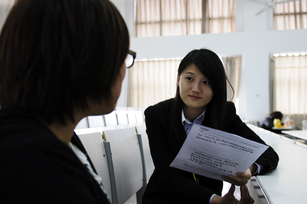会上,首先由人力资源部经理马飞虹介绍了公司的概况、业务范围、新人培训、工作环境。赫曼德公司还为在座的同学派送一些精美的公司文摘,并为一些感兴趣的同学提供现场面试的机会。现场许多同学认真填写简历,踊跃报名接受面试。