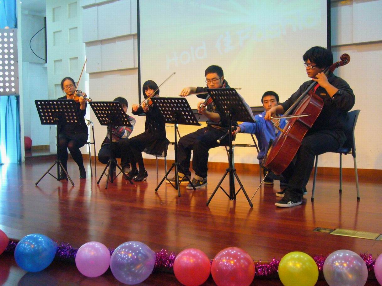 下午5点半,参演的演员和文艺部的所有工作人员到达表演现场做准备。工作人员正在忙碌地布置现场。热情的观众已经陆陆续续地开始进场。6点半,晚会正式开始。开场表演是提琴乐团的深情演奏,悠扬的音乐声激起了观众的共鸣,演奏完毕时,观众的掌声可谓十分给力。随后,激情的歌唱表演《王妃》更是赢得了全场的欢呼声,让现场的气氛更加火爆。英文歌曲串烧节目中,三位女生的甜美歌声打动了全场;安静的吉他弹唱原创歌曲《关于爱》又让观众静静聆听;小品节目和幽默的魔术表演引来了现场的笑声不断,将晚会带入轻松愉悦的气氛。晚会还穿插了有趣的游戏环节,有夹气球、猜字等,在现场再度掀起一次次小高潮。辅导员沈智莉老师也参与了夹气球环节,游戏环节师生默契配合,互动增进了学生与老师的感情。最后,作为嘉宾的学院校园女生带来了一首经典的粤语歌曲,甜美歌曲示意晚会已进入尾声。一曲唱罢,辅导员沈老师上台发表感言,表示对这次节目十分满意。现场在一片持久的掌声中拉上了帷幕。