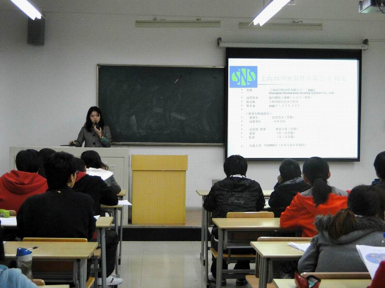 首先上海西川密封件有限公司关人员为学生们简述了公司规模、经营方式、招聘职位、招聘条件和报酬福利等方面的情况,使同学们对公司有了一个基本的了解和认识。在会上同学们积极提出自己的问题,认真地听取招聘人员的意见和建议,并积极踊跃的递交个人简历。还有很多同学表示希望自己的第一份工作是稳定的。