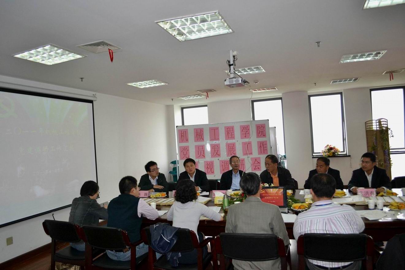 11月4日上午,机械工程学院党员发展工作巡视调研会在行政楼1210会议室举行。校党委组织部部长张伟林老师、校关心下一代工作委员会吴德林老师、陈心德老师,党委组织部副部长朱洪春老师、学生处副处长严运楼老师和团委副书记施�|老师等出席了巡调会。机械工程学院党总支书记刘牧众、副书记朱蓓,教工党支部代表及学生党支部书记参加了此次会议。
