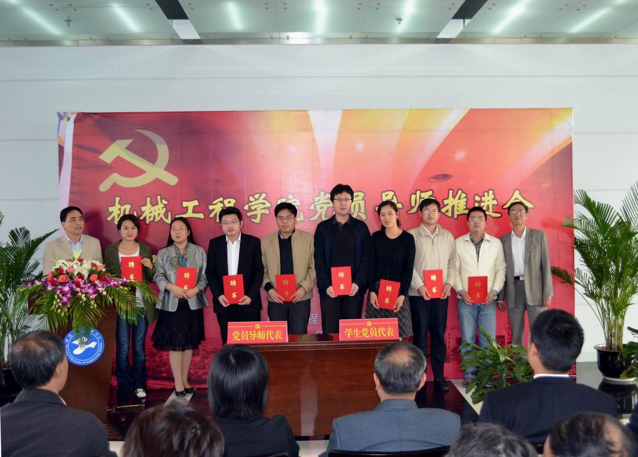 会后,参加会议的校领导与全体党员导师、学生党员代表合影留念。机械工程学院将借此活动为契机,在校党委、组织部、关工委的关心下,向各兄弟学院党委(总支)看齐,充分发挥党组织的凝聚力、创造力和战斗力,结合党员教授、党员专家和党员干部的政治优势、专业优势和经验优势,以党建引领思想道德教育,使更多的党员教师直接参与大学生党建、大学生思想道德教育。通过党员教师的政治素养、人格魅力、学术能力全面影响和教育学生,引导学生坚定理想信念,提升科学研究能力和创新实践能力,培育卓越党员工程师。