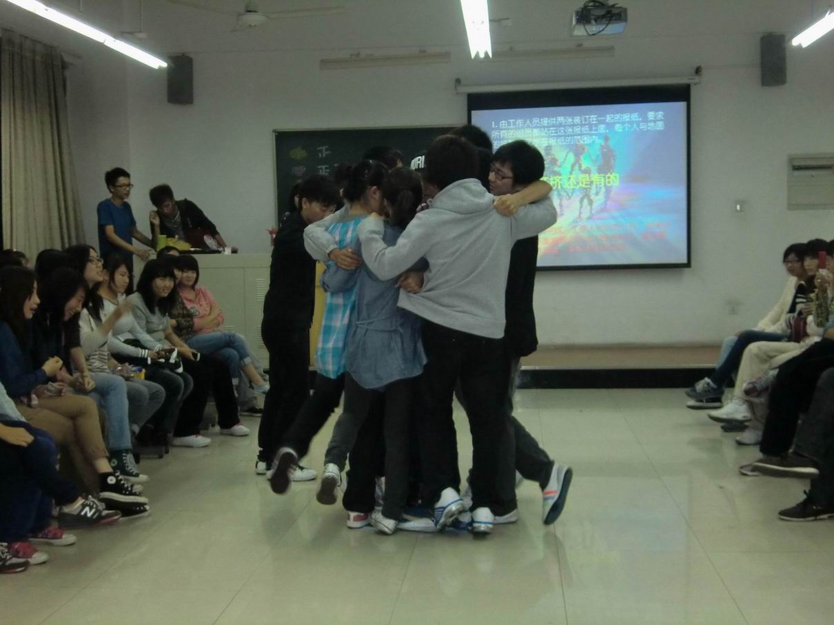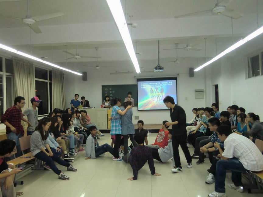 本次活动旨在让各部门的大一同学们相互熟悉,为以后相互配合工作打下基础,同时也是为了让同学们的课余生活更加丰富多彩.因此,活动尽量让同学们感到轻松,所以整场活动的主角就是游戏,.我们想通过做游戏的方式来让同学们相互认识与交流,同学们也十分开朗,很快就和周围的同学开始交谈,整场晚会就沉浸在这样欢乐的气氛中.