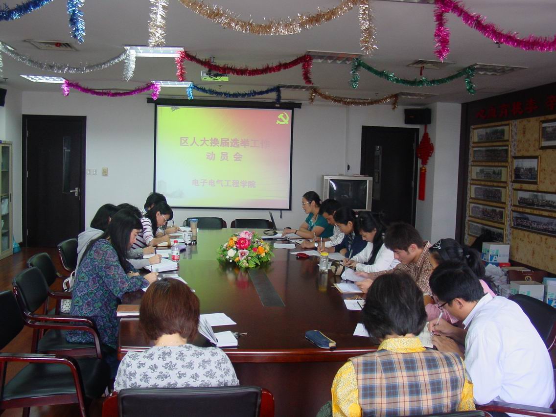 10月11日下午15:30分,电子电气工程学院在行政楼912召开电子电气工程学院区人大选举工作动员会,参加会议的有院党委书记茅蕾、副院长史志才、院党委副书记王东阳以及全体支部书记和辅导员。会议由院党委书记茅蕾主持。