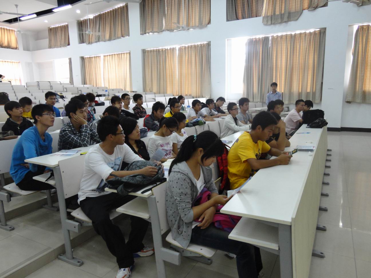 随后辅导员史志军老师为同学们发放了宣传册做了详细的介绍,他为大家详细介绍了征兵的对象及征兵的政治条件、身体条件及年龄条件,并就优惠条件给大家进行了重点宣传,希望同学们做好思想上及行动上的准备。