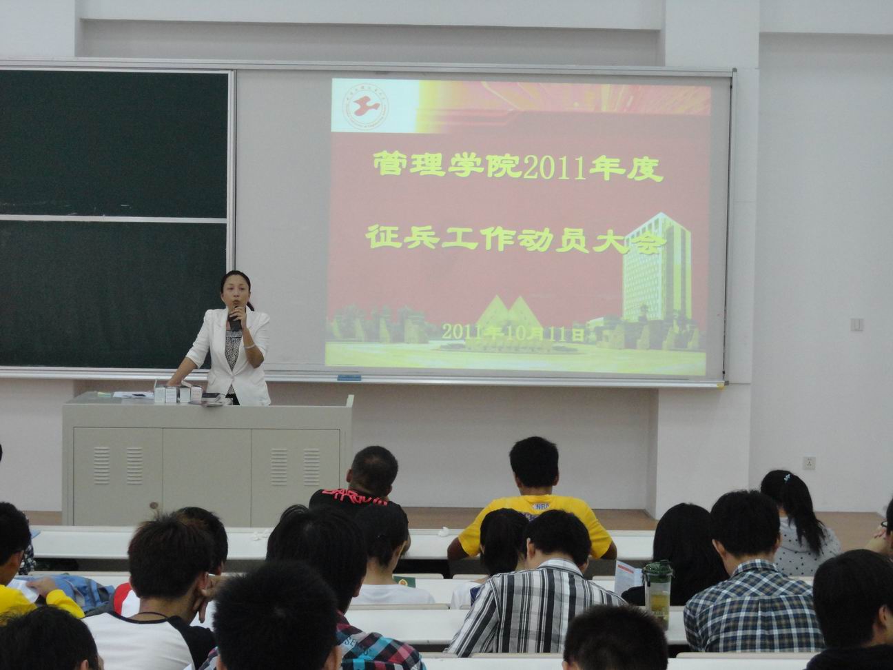为了响应校武装部号召,做好学院征兵工作。10月11日中午,管理学院在教学楼F120召开了2011年征兵工作动员大会。会议由管理学院党委副书记虞蓉老师主持,管理学院史志军老师及管理学院志愿服务部队的同学参加了会议。