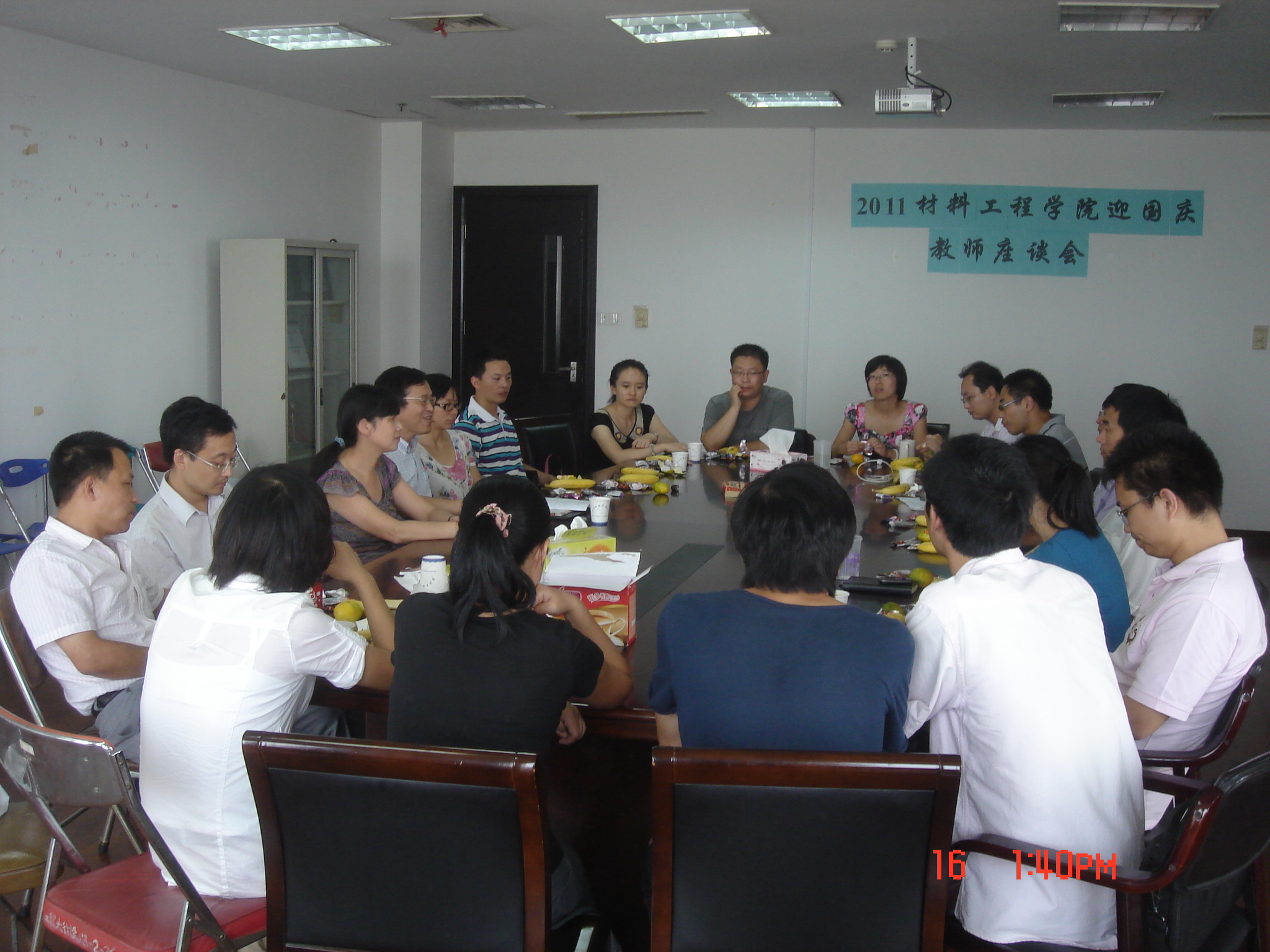 9月16日下午1时30,在行政楼16楼会议室举行材料工程学院迎国庆教师座谈会,近20余位教师参加了会议。除了材料工程系与材料科学系的教师外,还有来自学工办与实验室的老师,多数是近几年新进的教师。