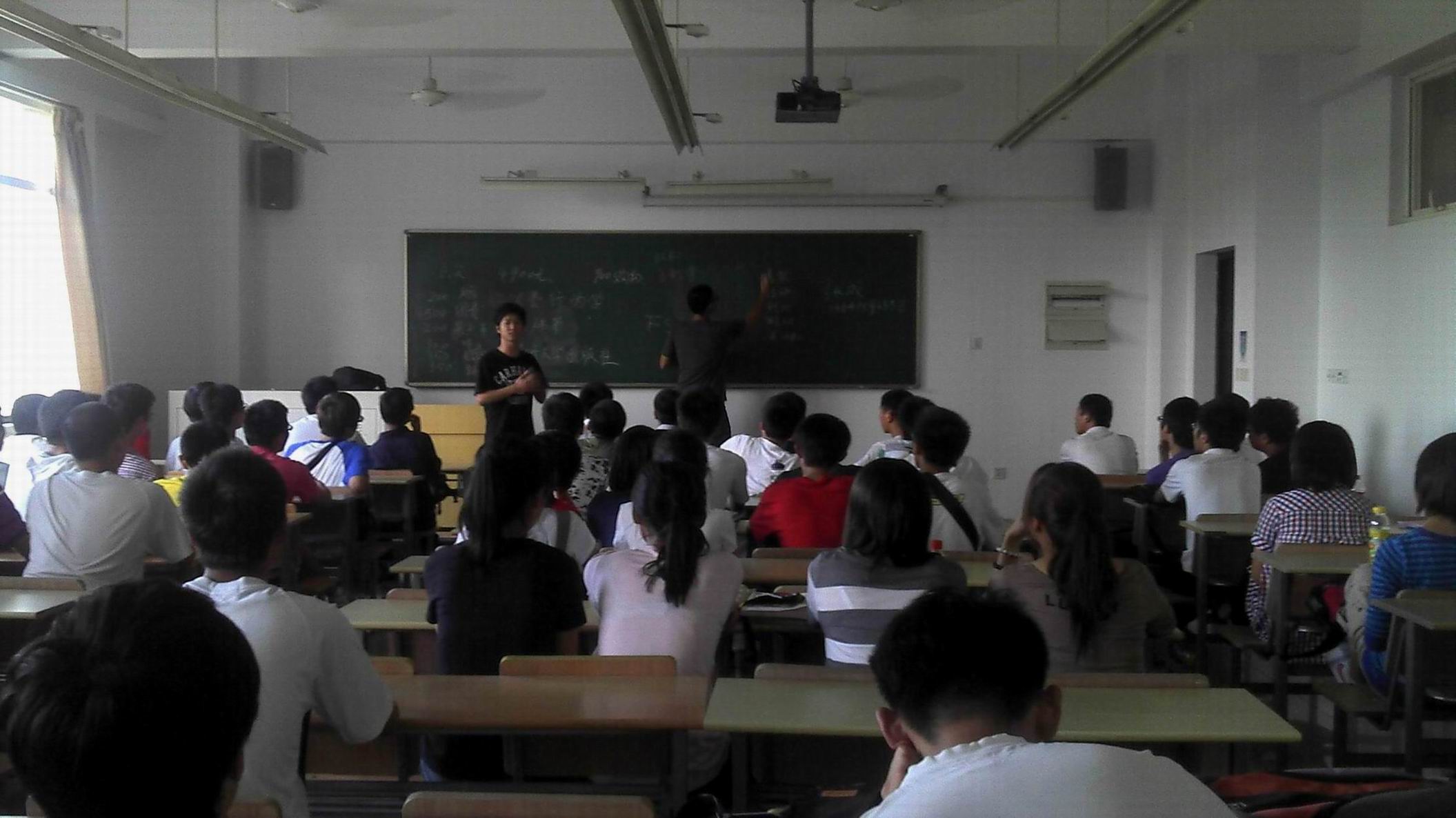 活动开始前,教室内就早已坐满了闻讯而来的同学们。在同学们的等待中,车队的一些队员们来到了教室。由于同学们十分踊跃,原定的一个教室已经无法满足众多的应试者,由此不难想象车队在学院中的影响力。车队的学长们首先给同学们认真的介绍了车队的大致情况,待介绍完以后开始逐一面试,同学们在学长们面前展示着自己的才华与对汽车的热爱。