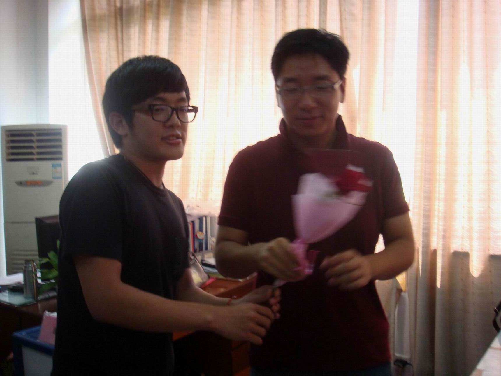 学院团学联的主席团和各个部门的部长手拿着玫瑰花向老师们道上了一句深深的感谢,同时送上了他们为老师精心挑选的勋章。团学联是同学们能够更多接触老师的平台,而这样一个学生组织更是需要老师们的指导与帮助。工作中与老师的交流和接触拉近了团学联成员与老师们之间的距离。因此就在教师节来临之际,团学联在主席团的号召下为老师们细心挑选了教师节礼物。老师们脸上的笑容是团学联的成员们收获到的最珍贵的礼物。